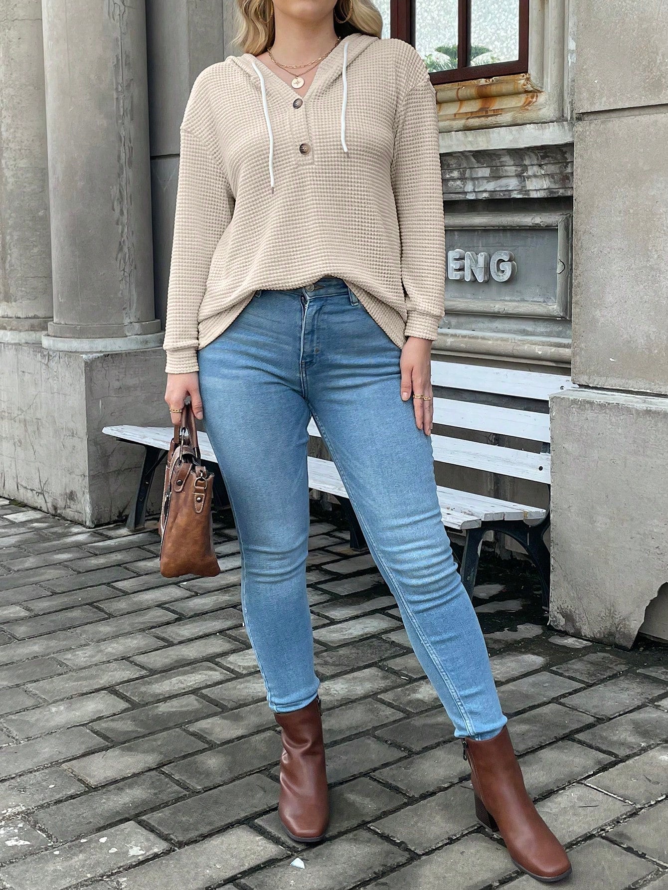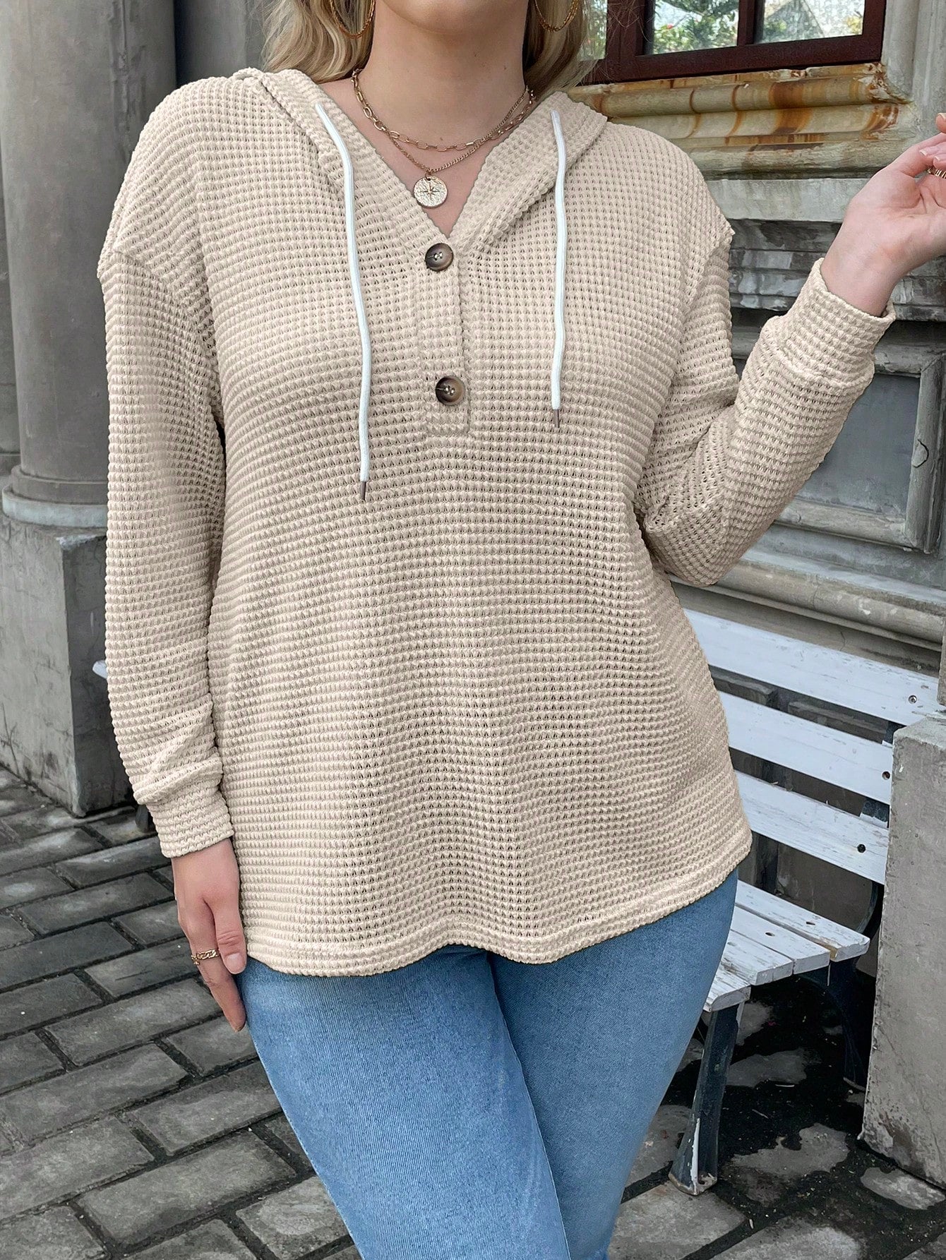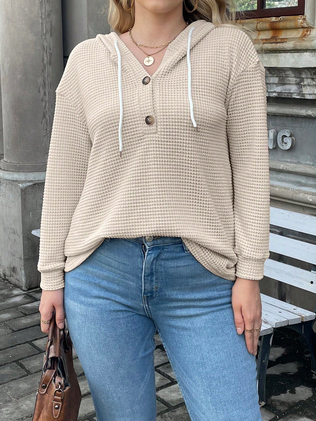 هودي ازرار نصف منخفض الاكتاف رباط مقاس كبير