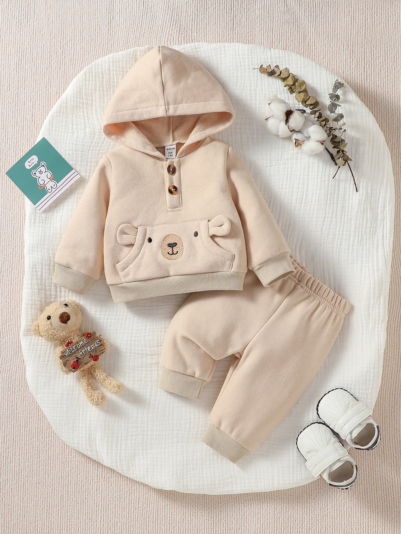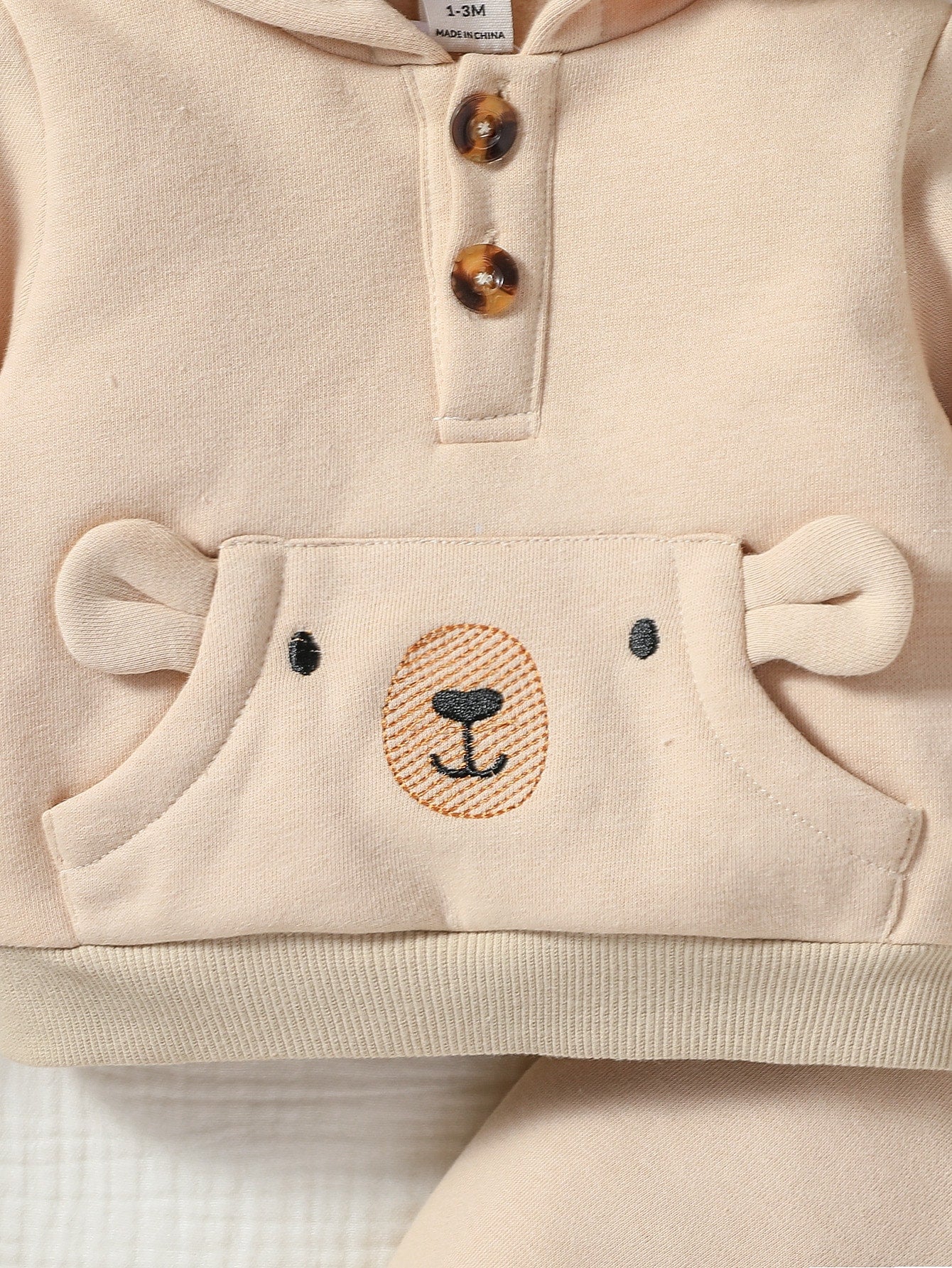 هودي نمط رسوم كارتون جيب الكنغر وبنطلون رياضي مولود جديد