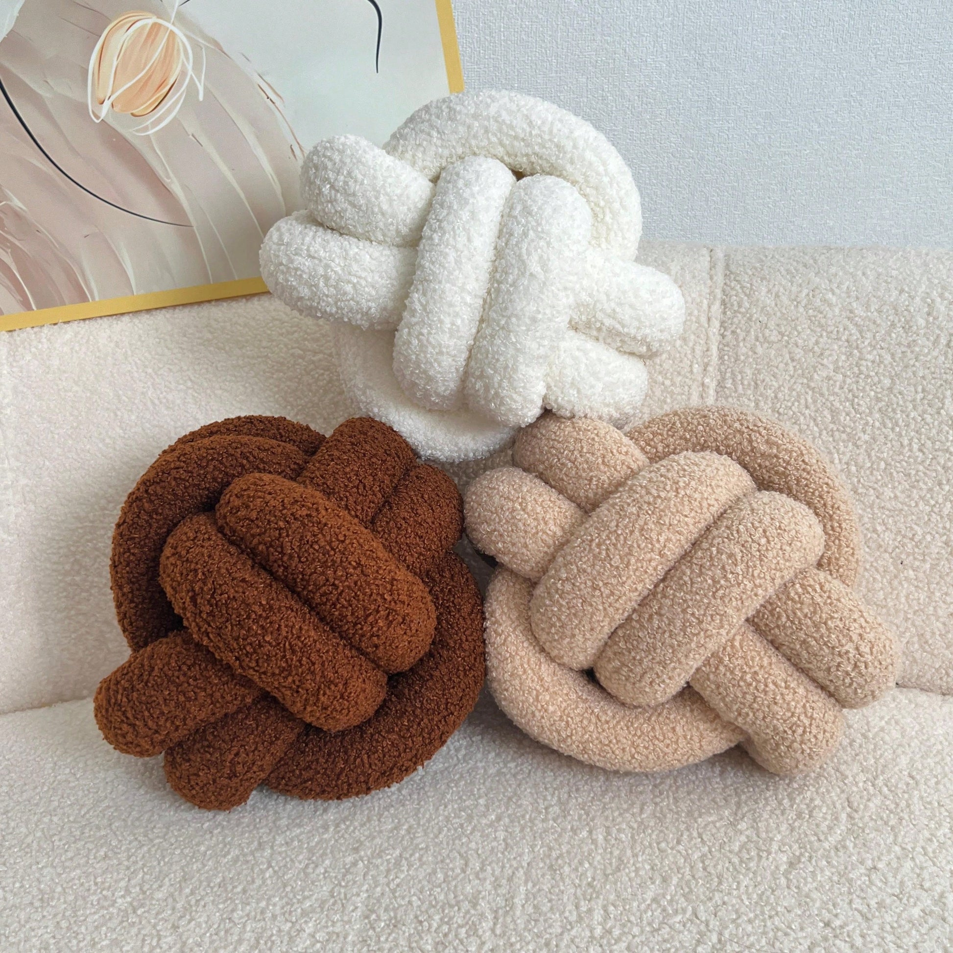 وسادة بخرزة عقدة بيضاء قطعة واحدة ، وسائد مزخرفة مغزولة ناعمة لون كاكي لديكور المنزل
