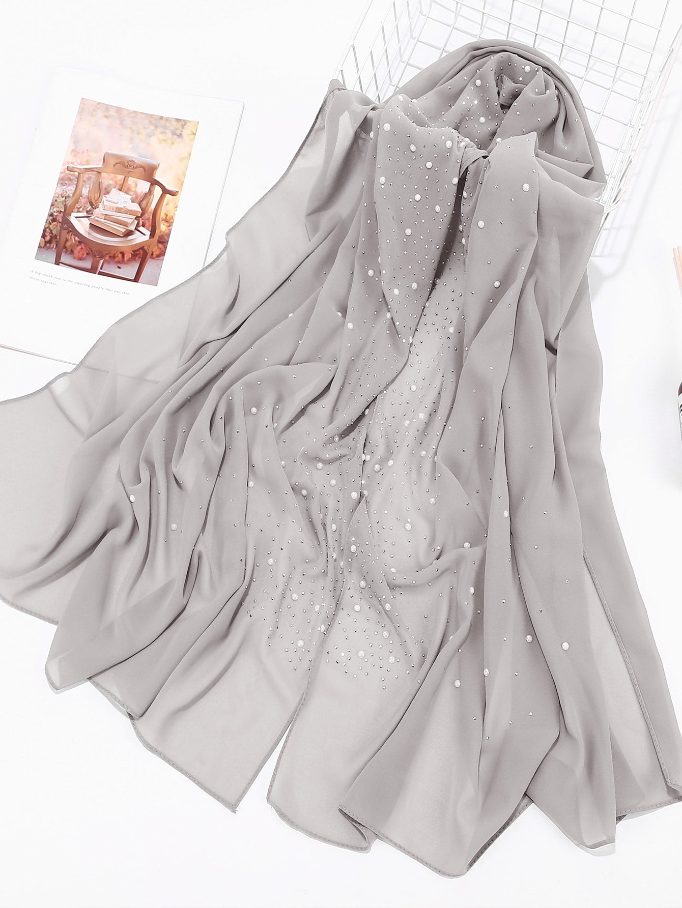 وشاح شيفون أنيق مزين بالراين للحياة اليومية والرحلات الخارجية