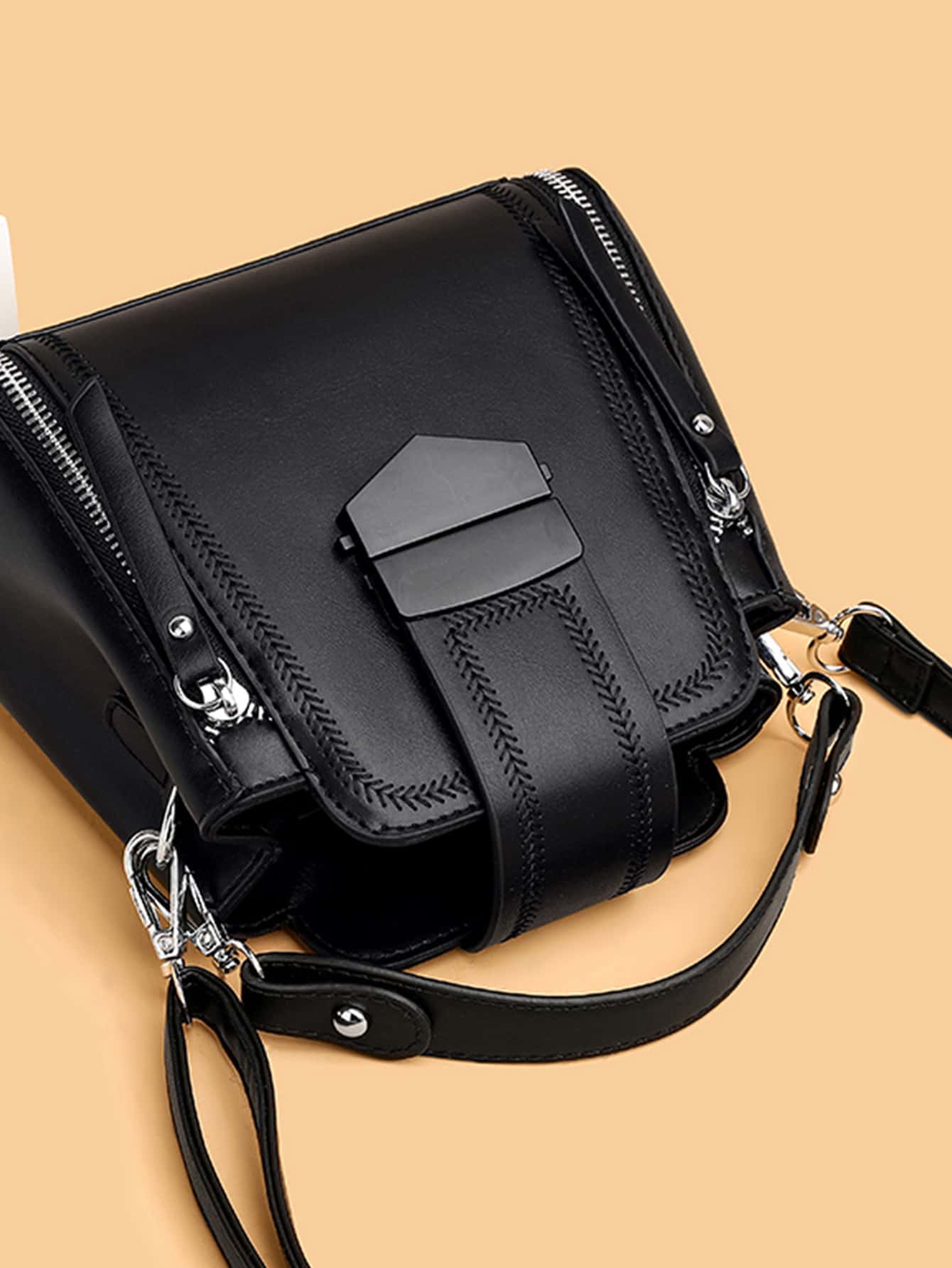 حقيبة بريدي جلدية مصممة بأسلوب عصري وبسيط بسحاب أمامي مناسبة للفتاة والفتيات المراهقات اللواتي يحبون الأسلوب المريح بحجم صغير