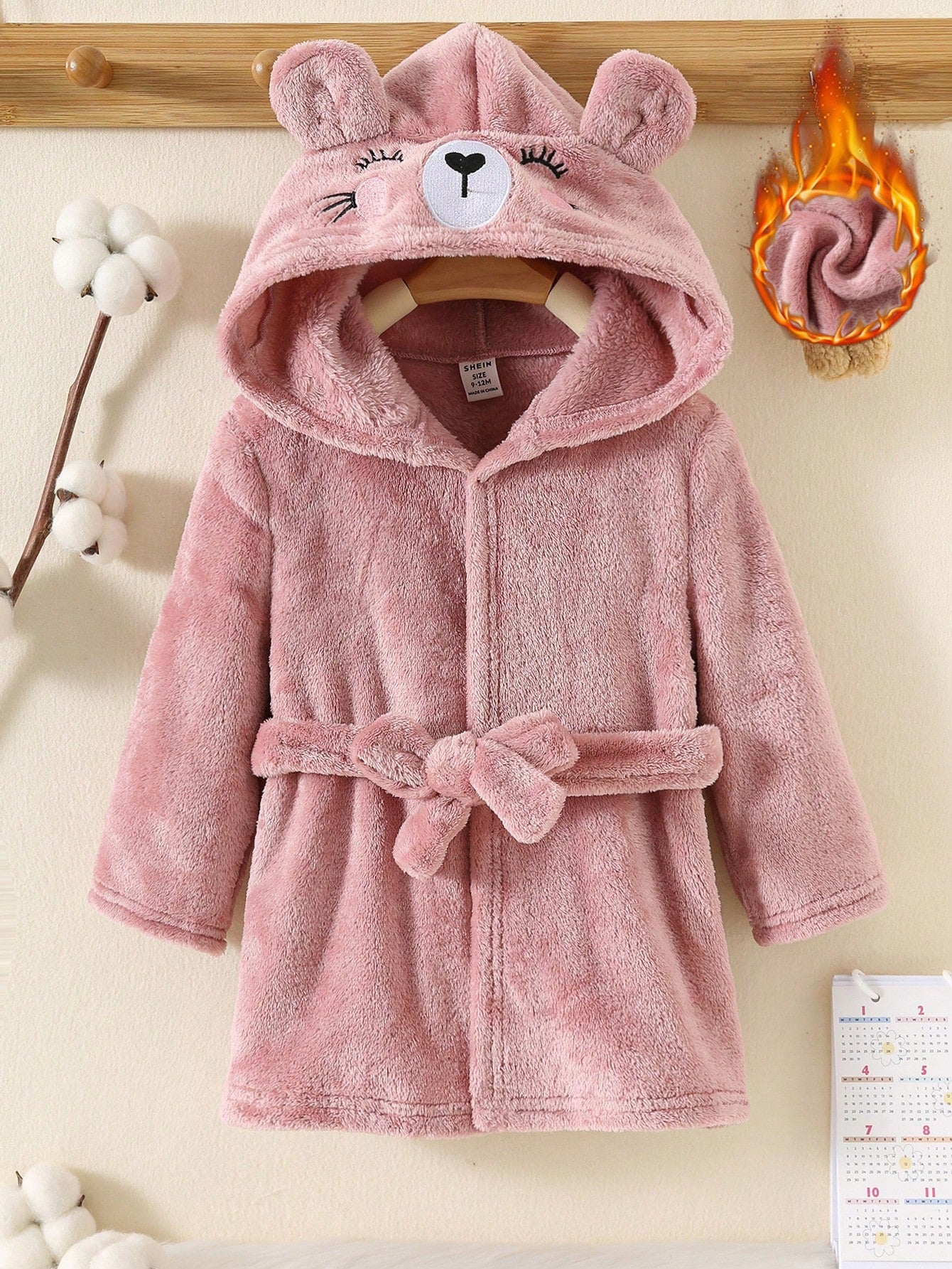 رداء استحمام مطرز براسم كرتوني لطيف ودافئ للفتيات الصغيرات مع حزام قابل للفصل، خريف / شتاء