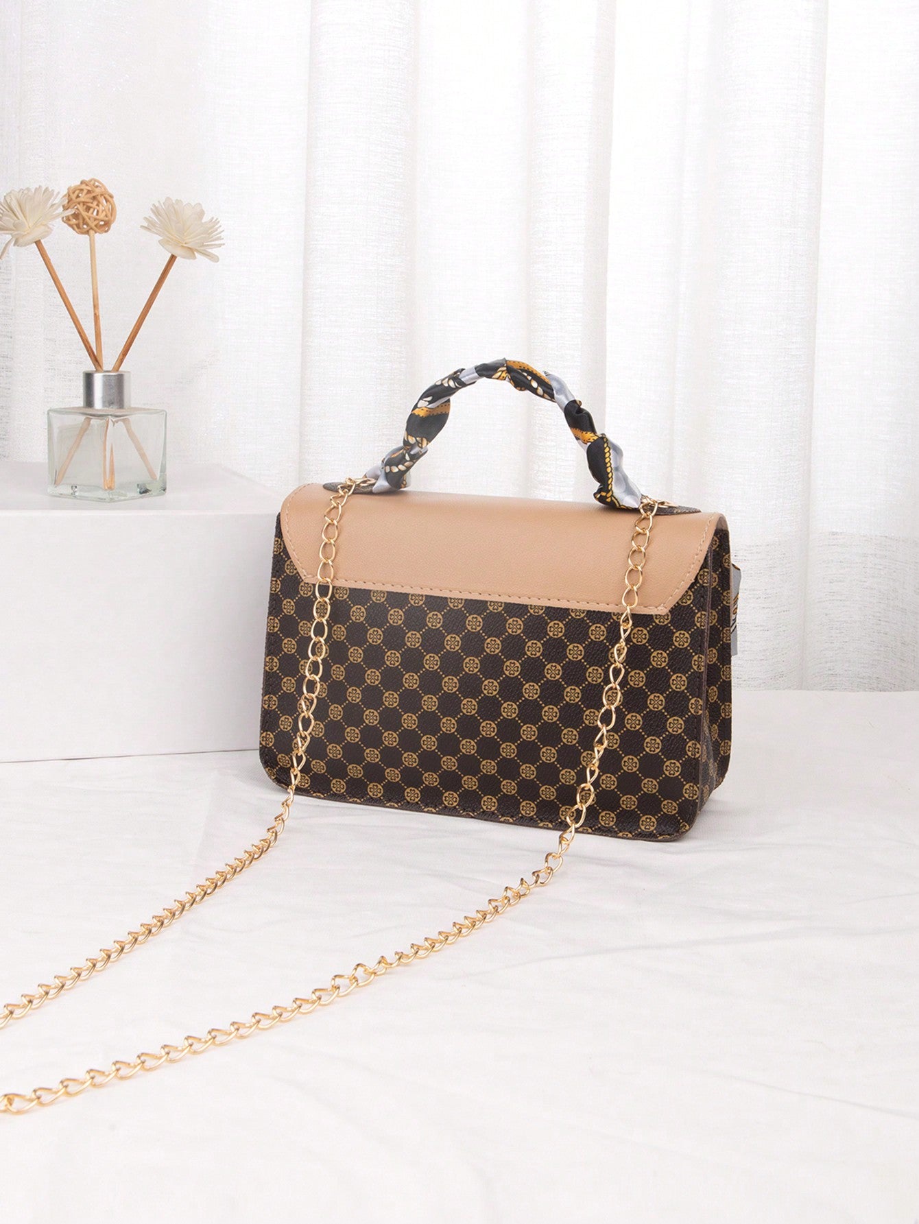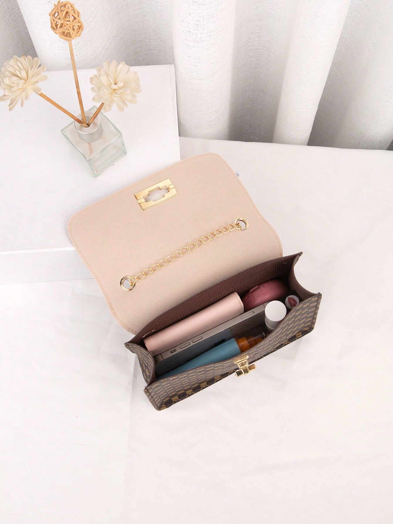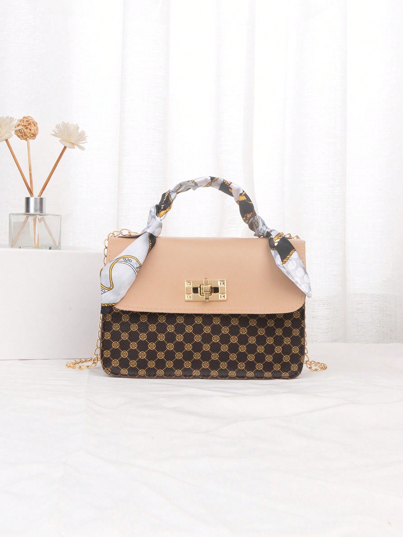 ميني وشاح نحيل زخرفة قفل دوار حقيبة مربعة الموضة متعددة الوظائف حقيبة كروسبودي