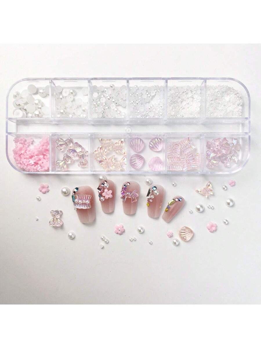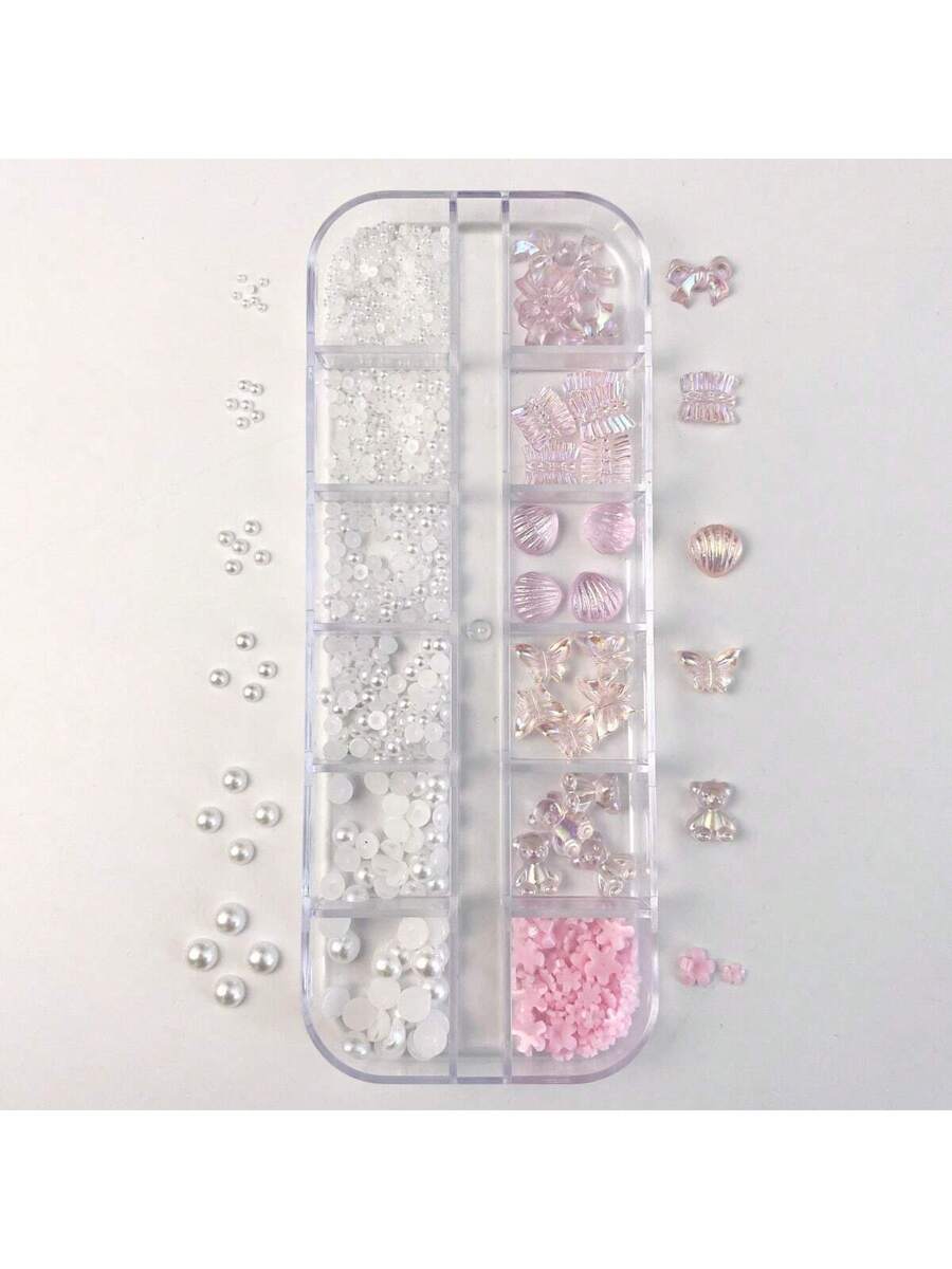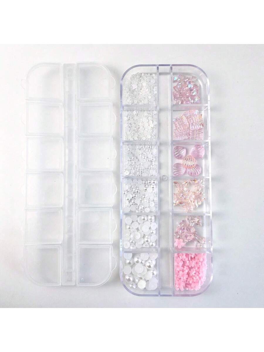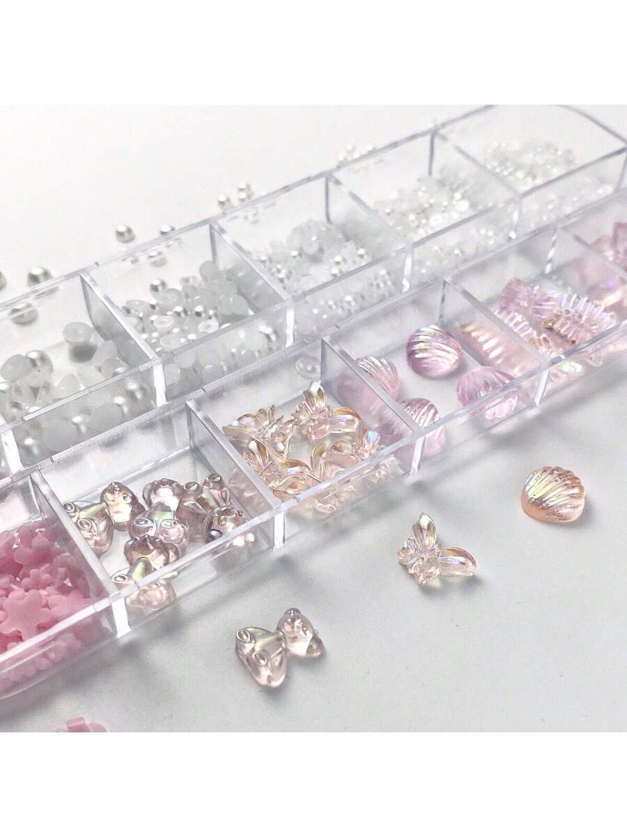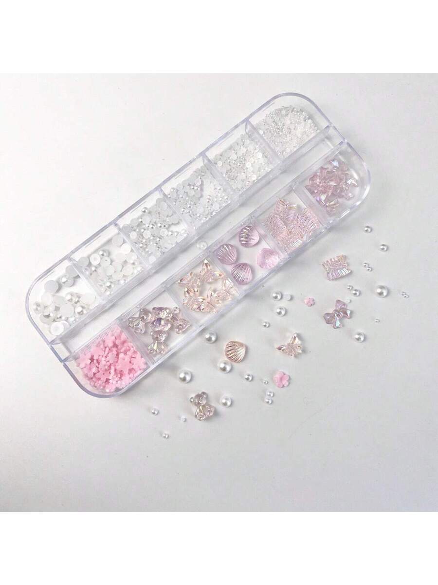 صندوق 12 خليط من القشور القطبية الوردية الصناعية واللؤلؤ لديكورات الأظافر