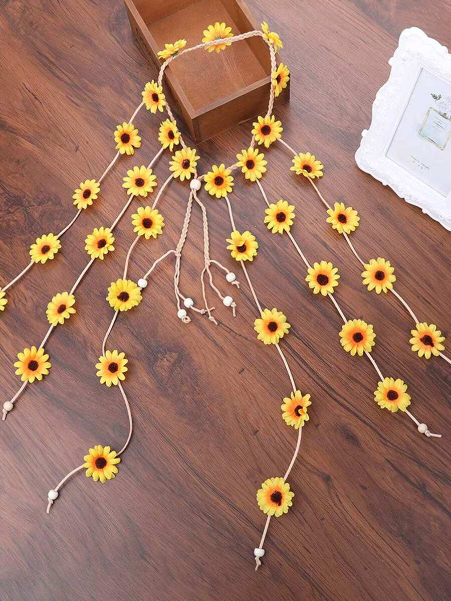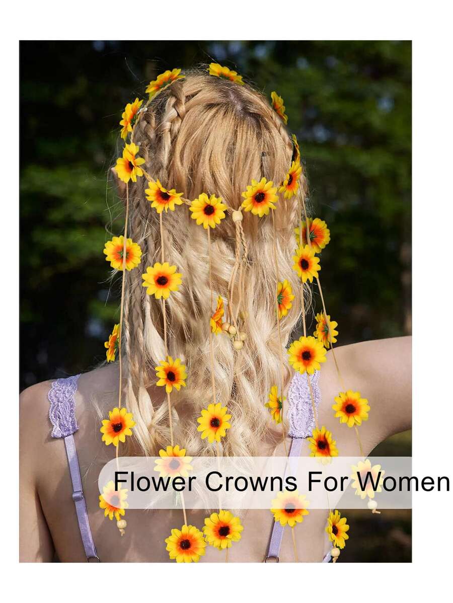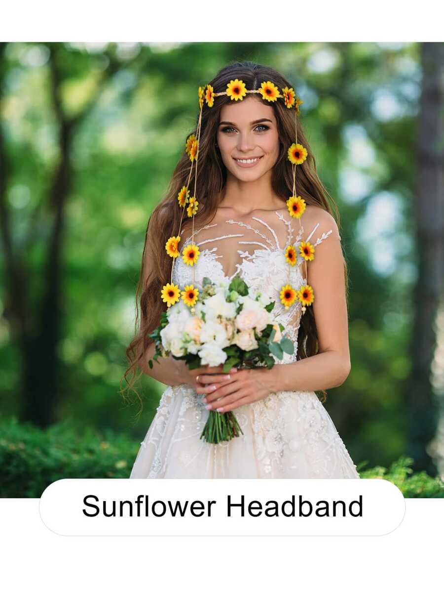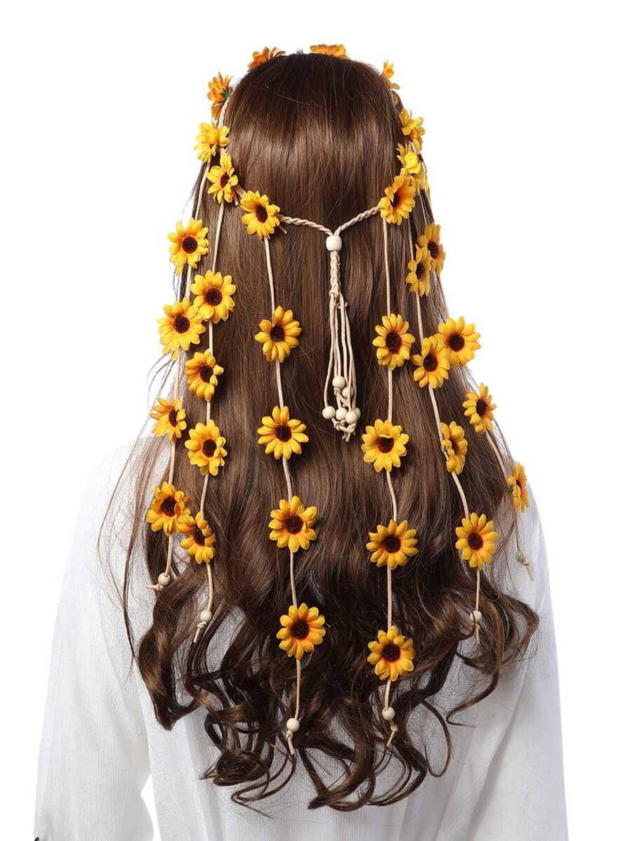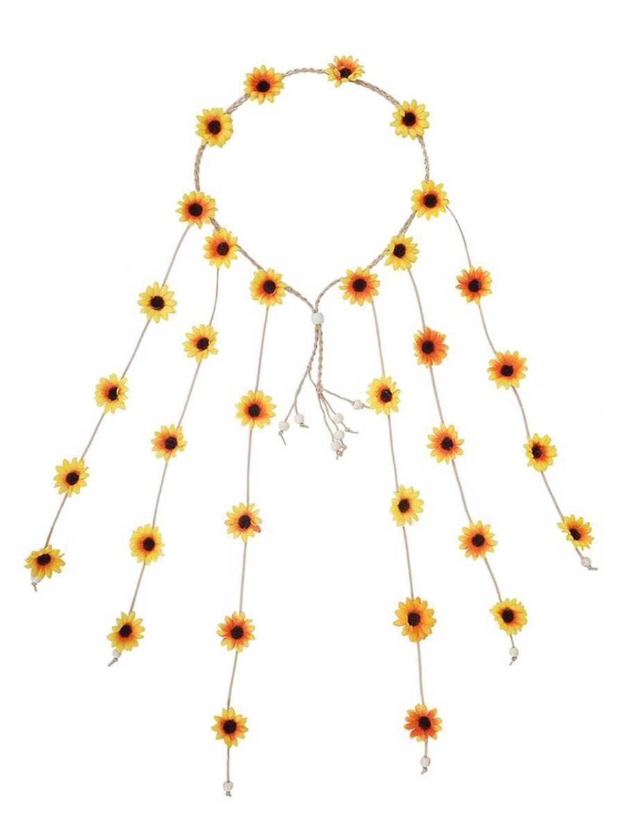 إكليل زهري بوهيمي بزهور عباد الشمس