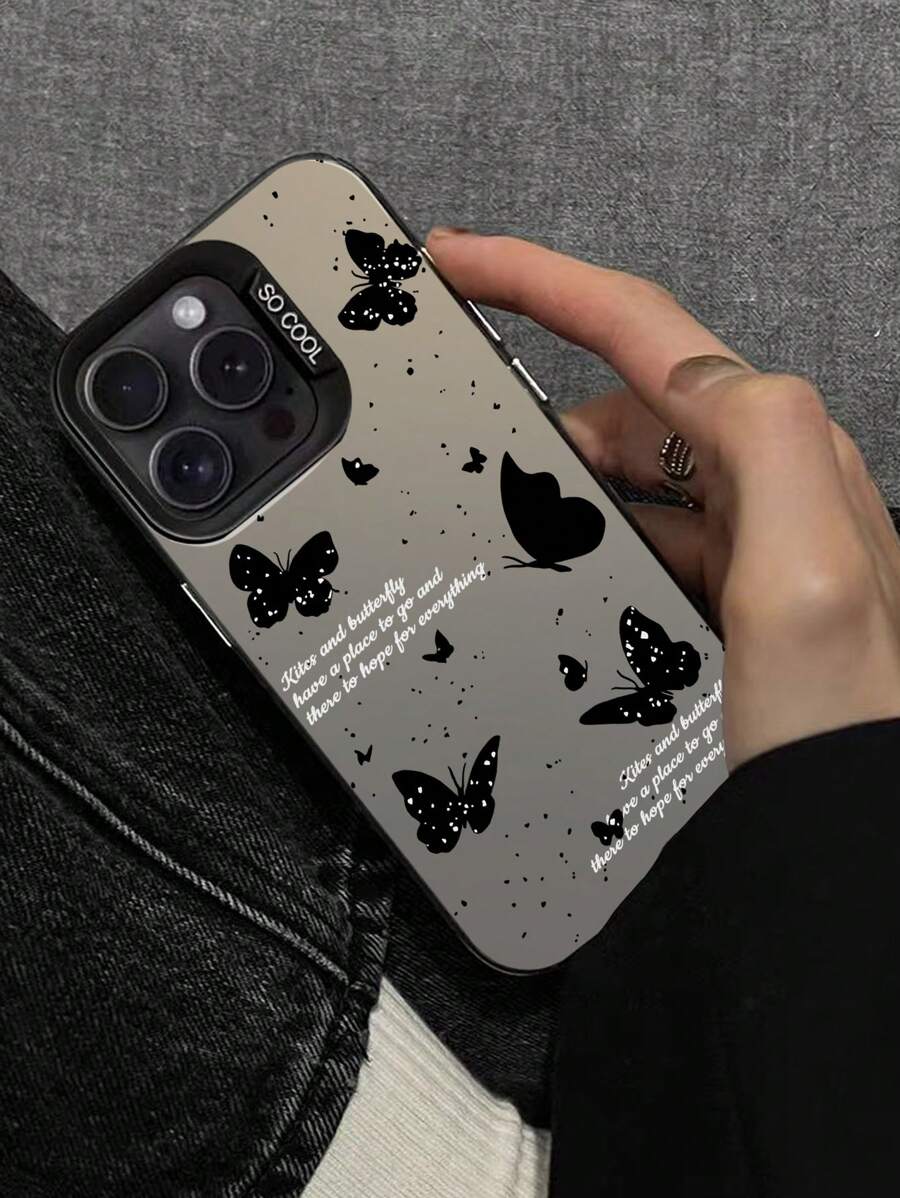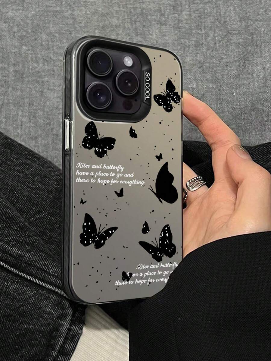 غطاء هاتف ذو تصميم أسود بفراشة وتصميم مكسور