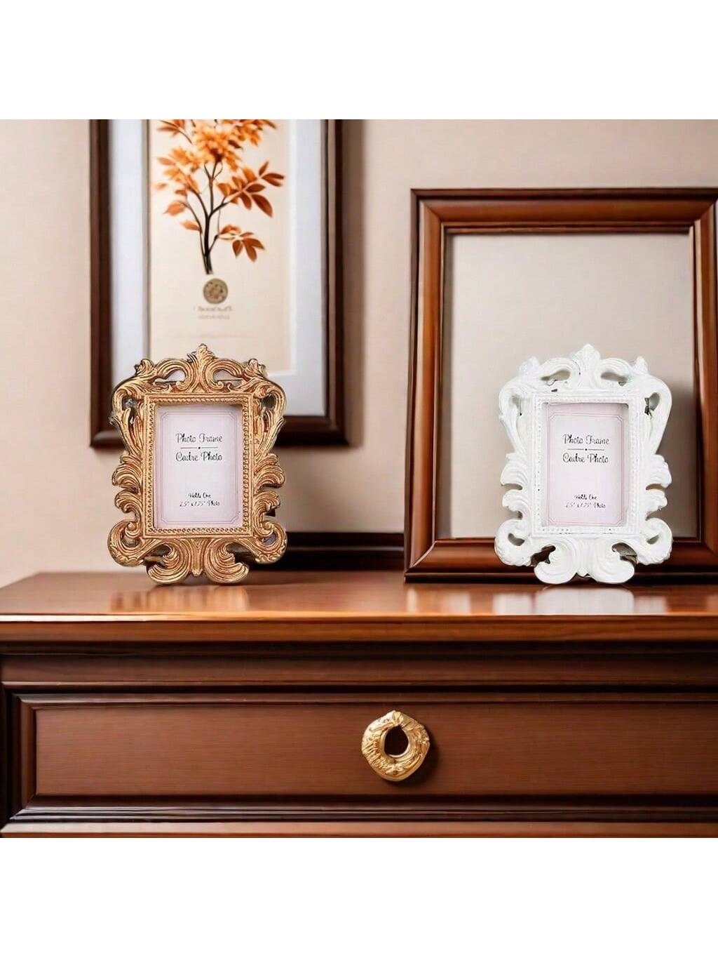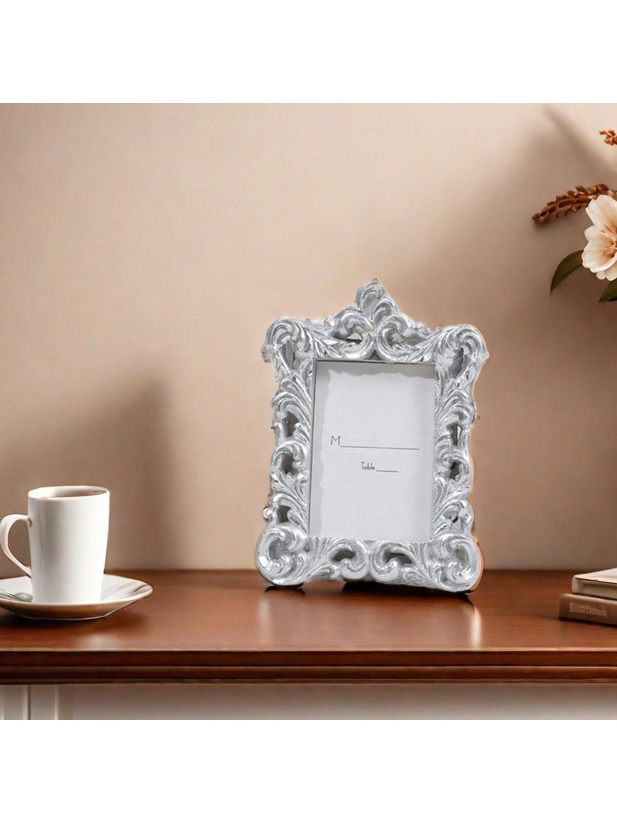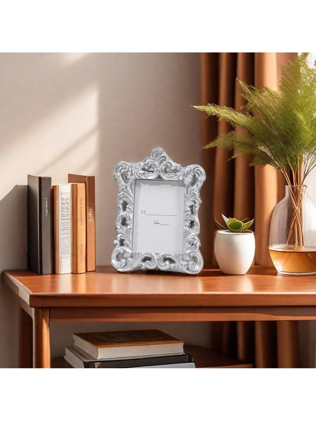 قطعة إطار صور مستطيل منقوش بنقوش زهرية عتيق أوروبي