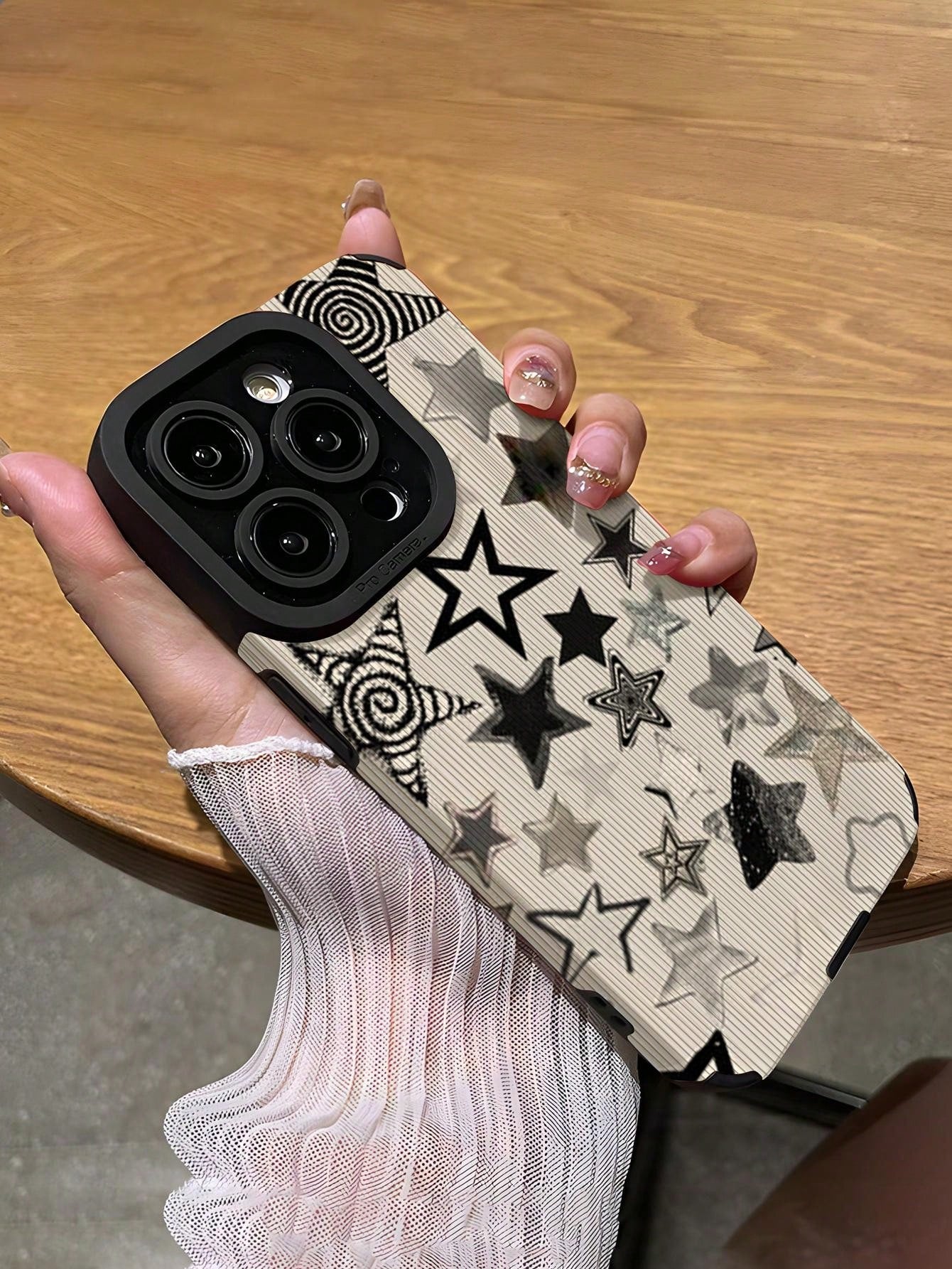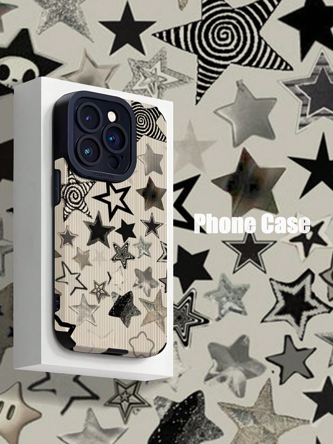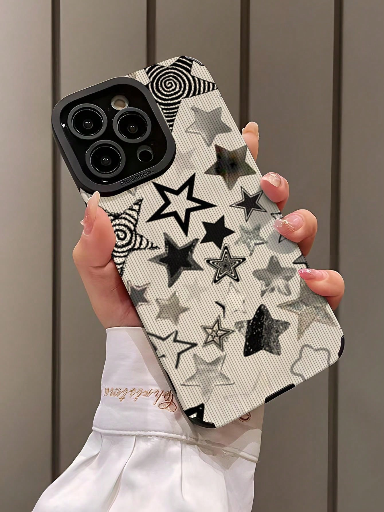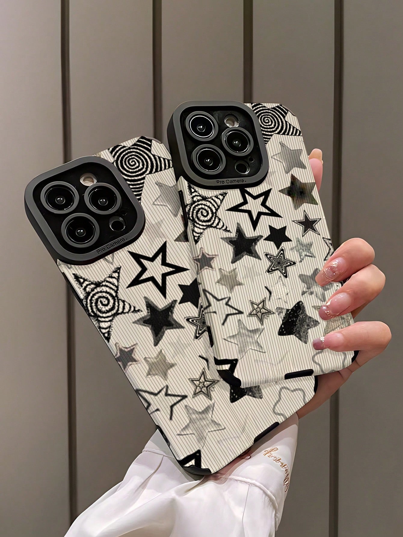 1 قطعة إطار هاتف مصنوع من جلد اصطناعي بتصميم خطوط نجمية وشريطية عتيق