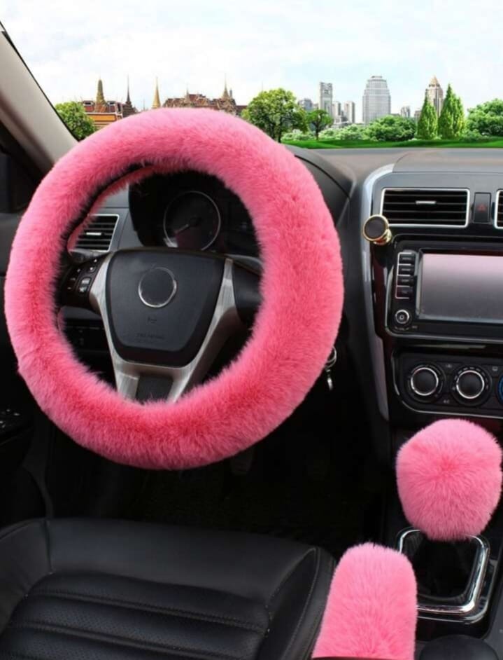 3 قطع زغبي غطاء مقود السيارة و فرملة اليد و غطاء ناقل الحركة طقم