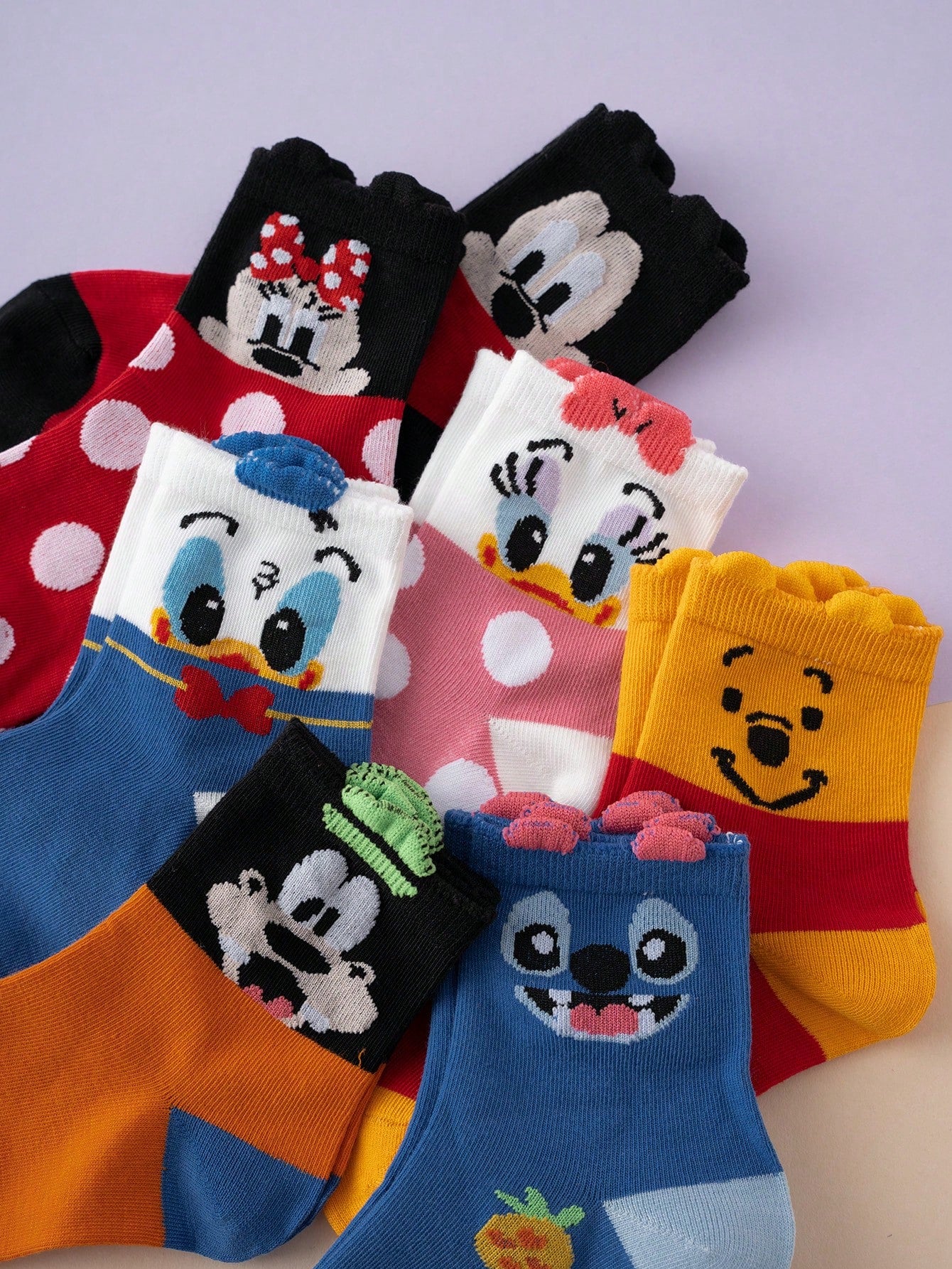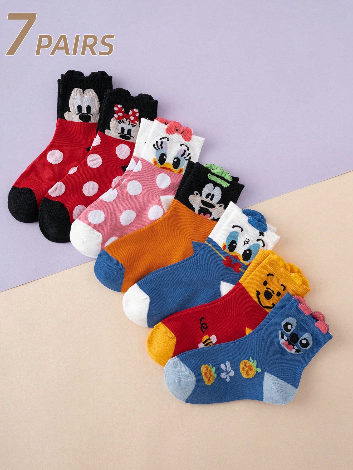 7 أزواج جوارب كرتونية جميلة ديزني ميكي ماوس