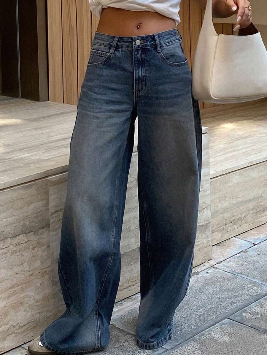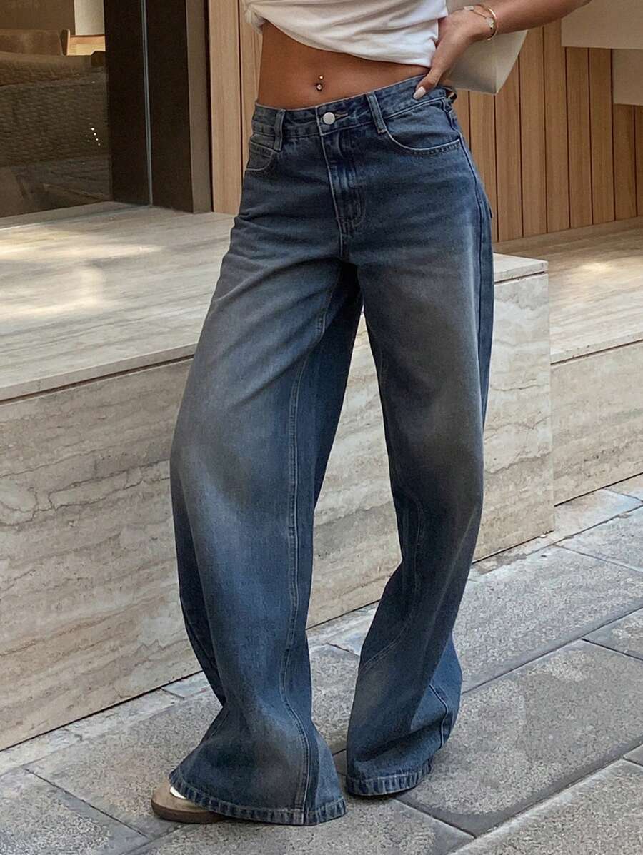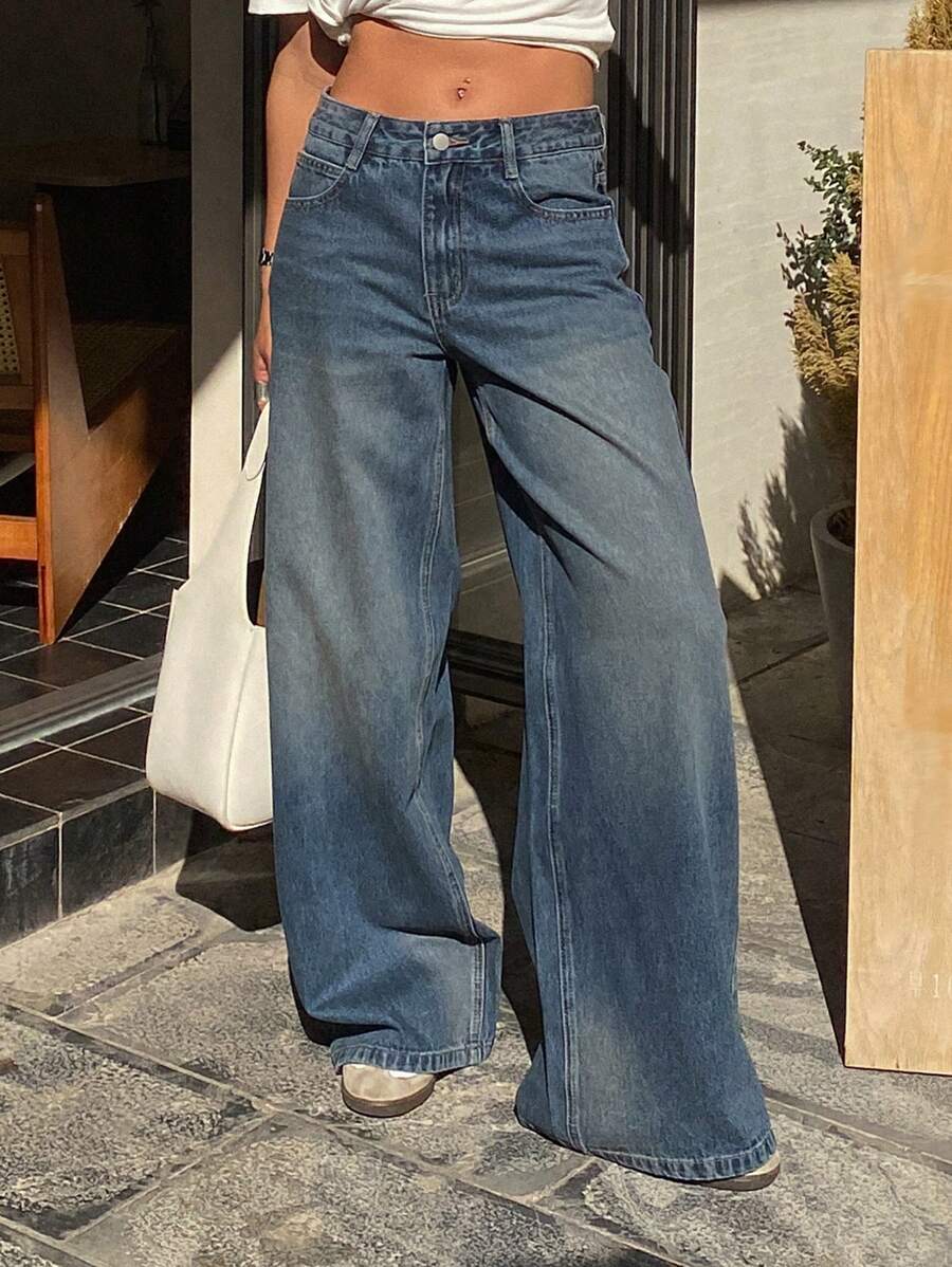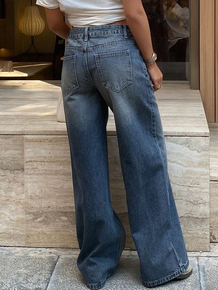 سراويل جينز نسائية ذات خصر منخفض وجيوب أمامية