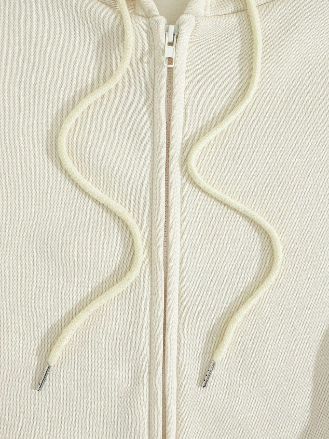 EZwear هودي موحدة اللون سستة رباط مبطن حراري