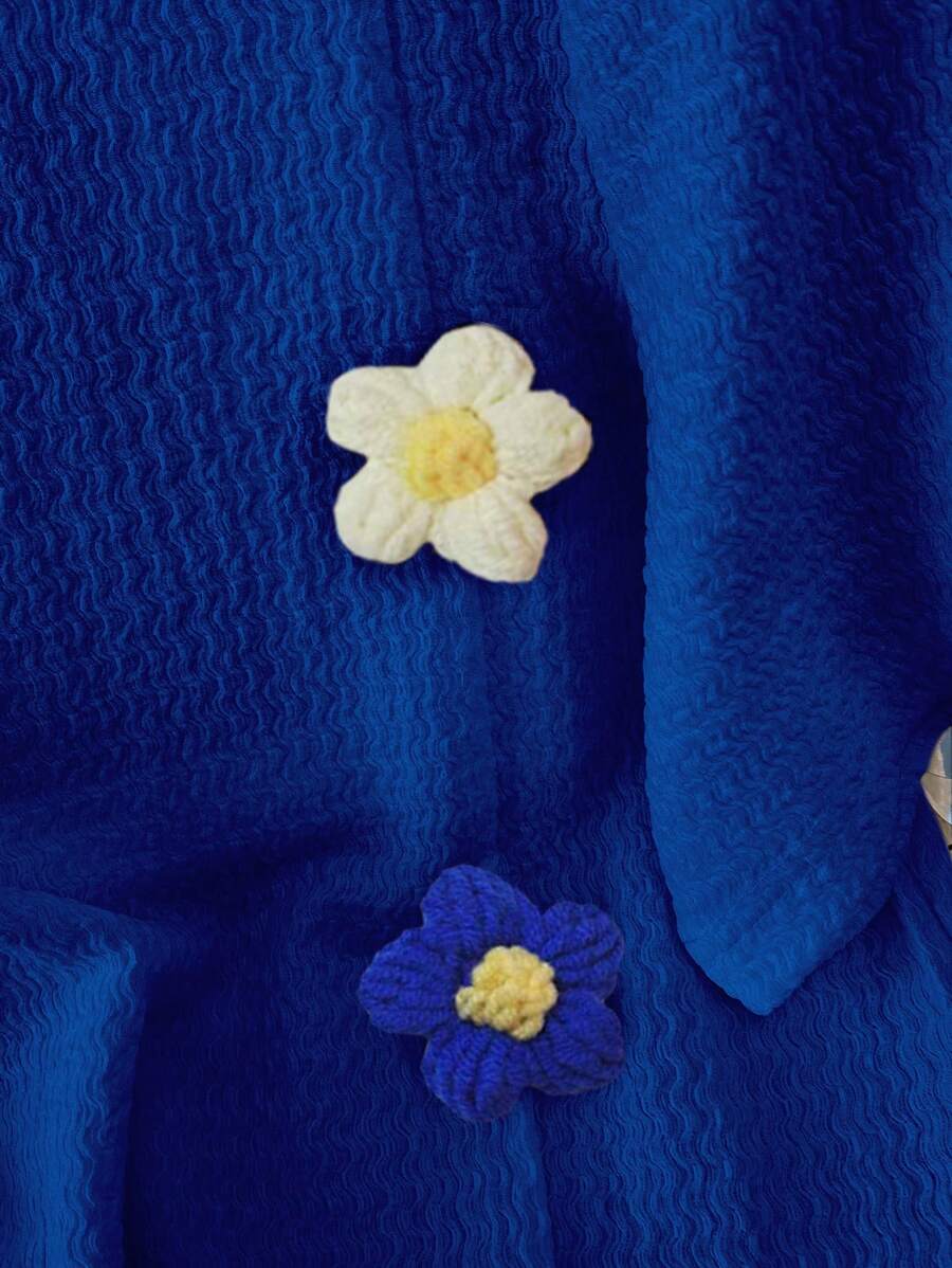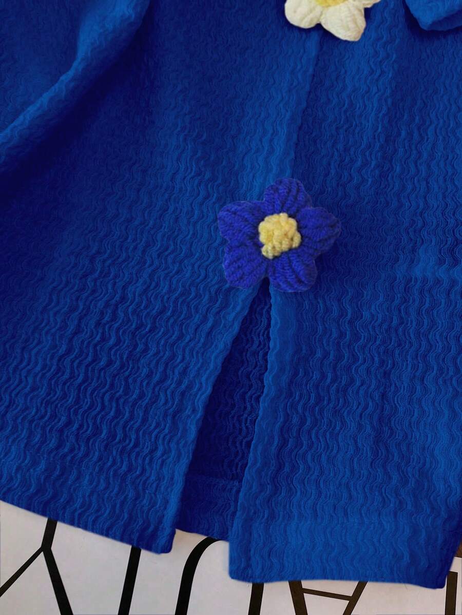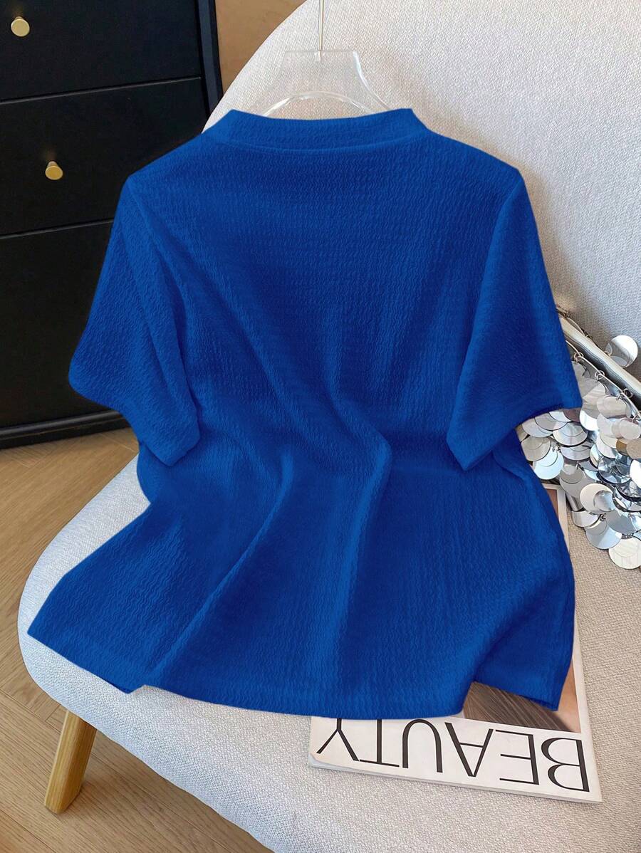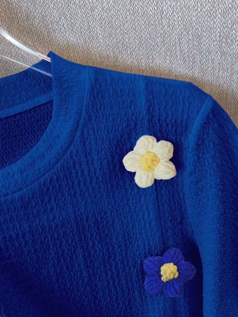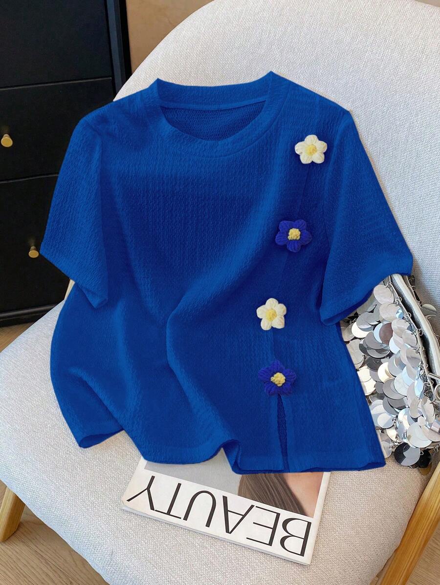 تيشيرت مطرز بزهور ثلاثية الأبعاد بأكمام قصيرة وياقة دائرية أنيق