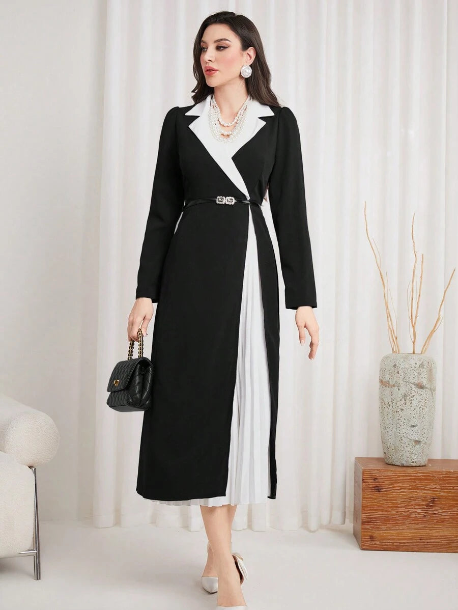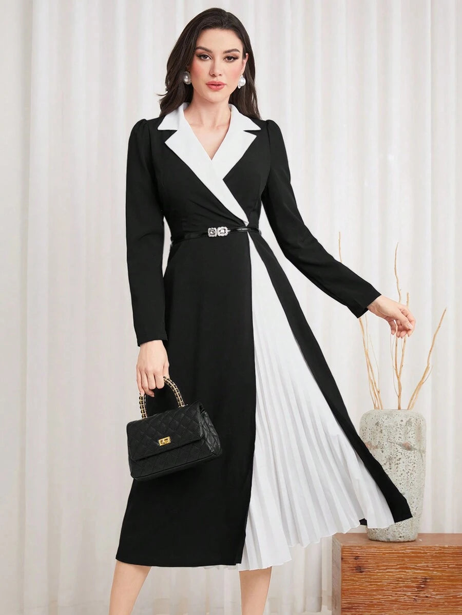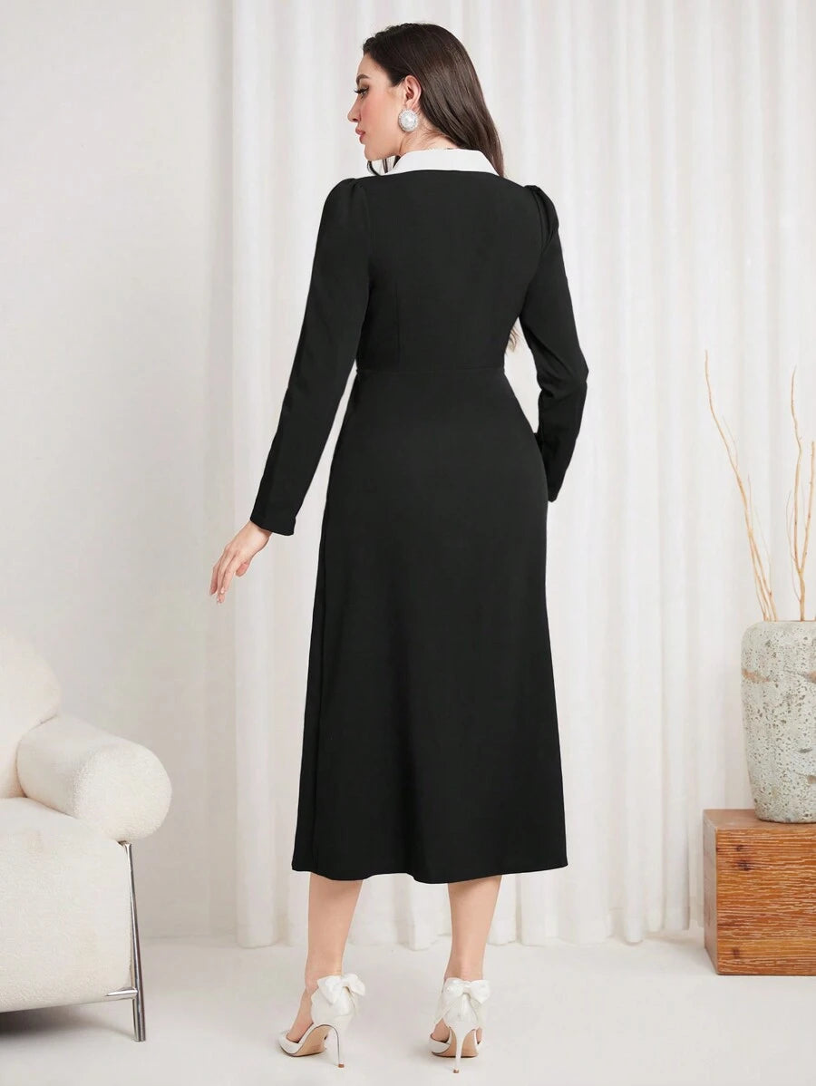 فستان نسائي طويل ماكسي مع جيوب وطبعة لوني