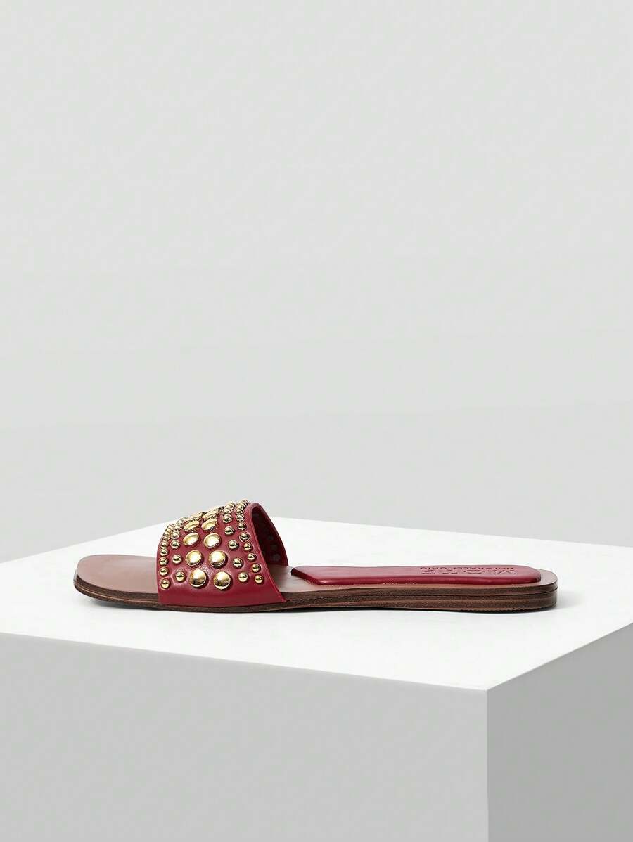صنادل شقة مفتوحة الأصبع ذات لون متباين للنساء