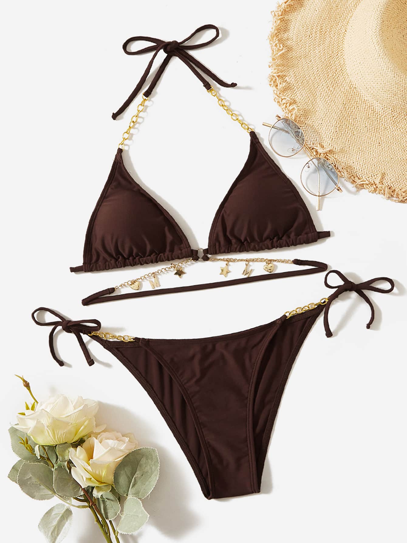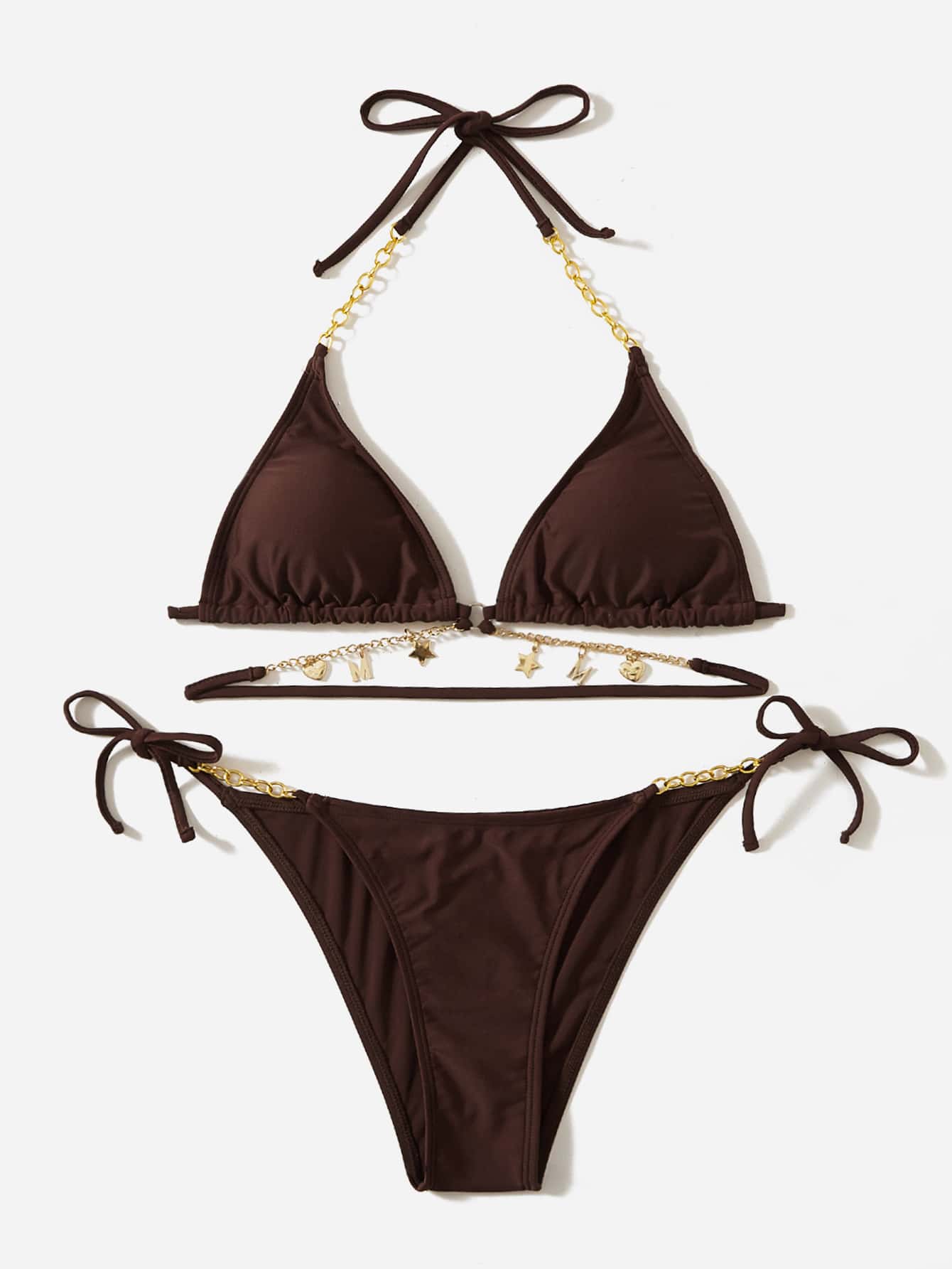 ROMWE Kawaii بيكيني برباط جانبي بطبعات الحروف للزينة
