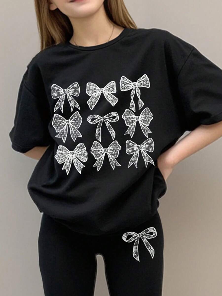 بلوزة بأكمام قصيرة فضفاضة مع بنطلون مطرز متموج قطعتان