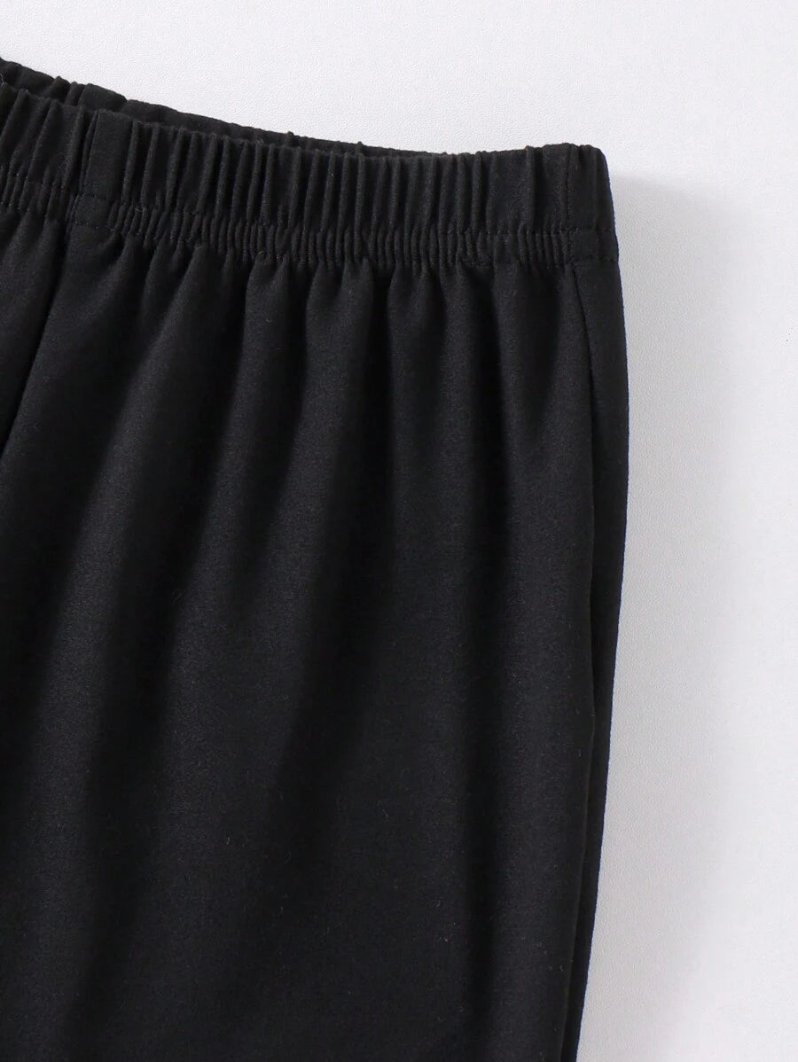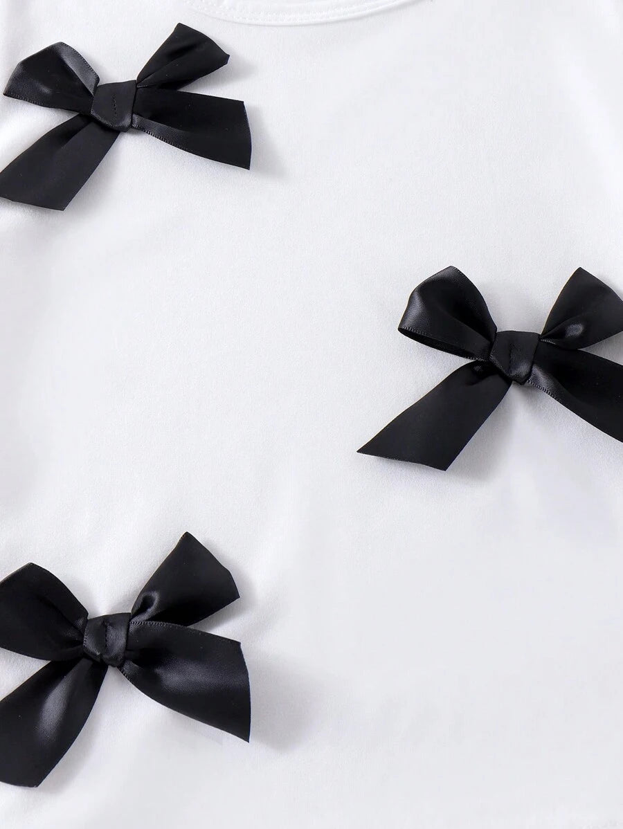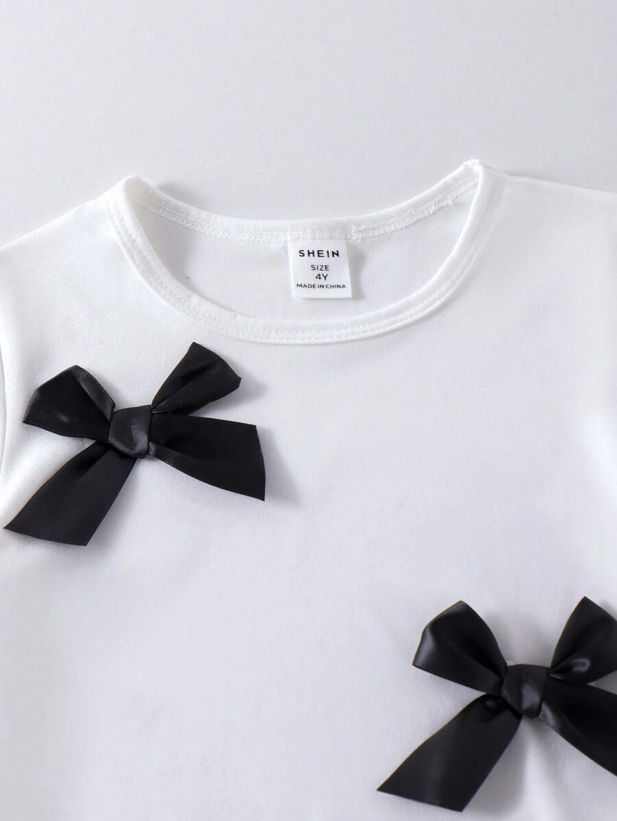 طقم تي شيرت أبيض كاجوال بأكمام قصيرة وربطة عنق مع بنطلون ذو ساق مرنة سوداء