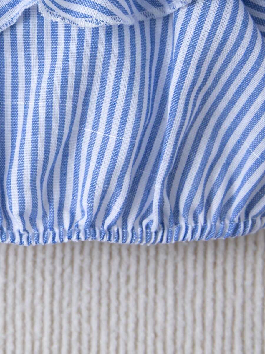 طقم شورت ولباس علوي كاجوال مخطط بدون أكتاف للفتيات الصغيرات