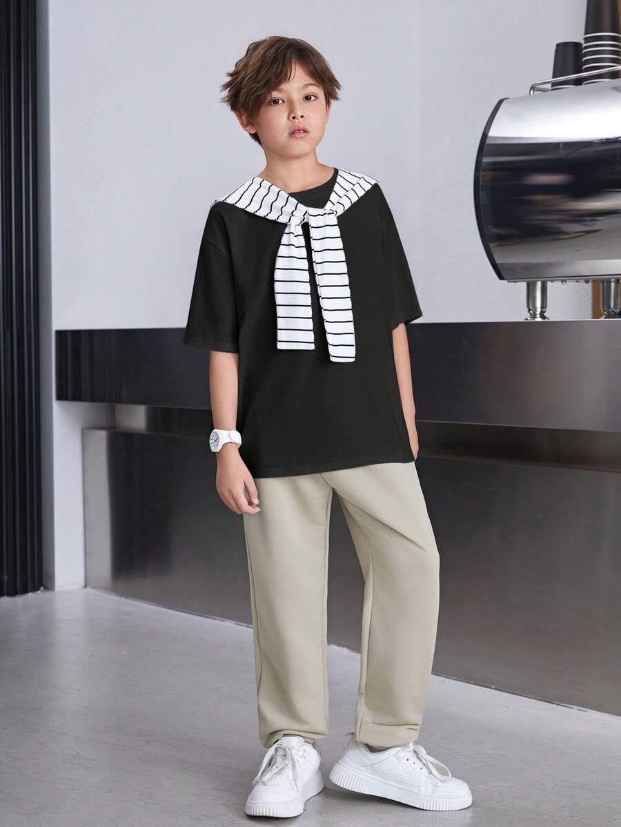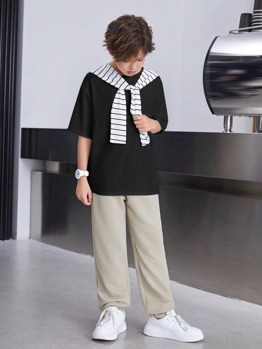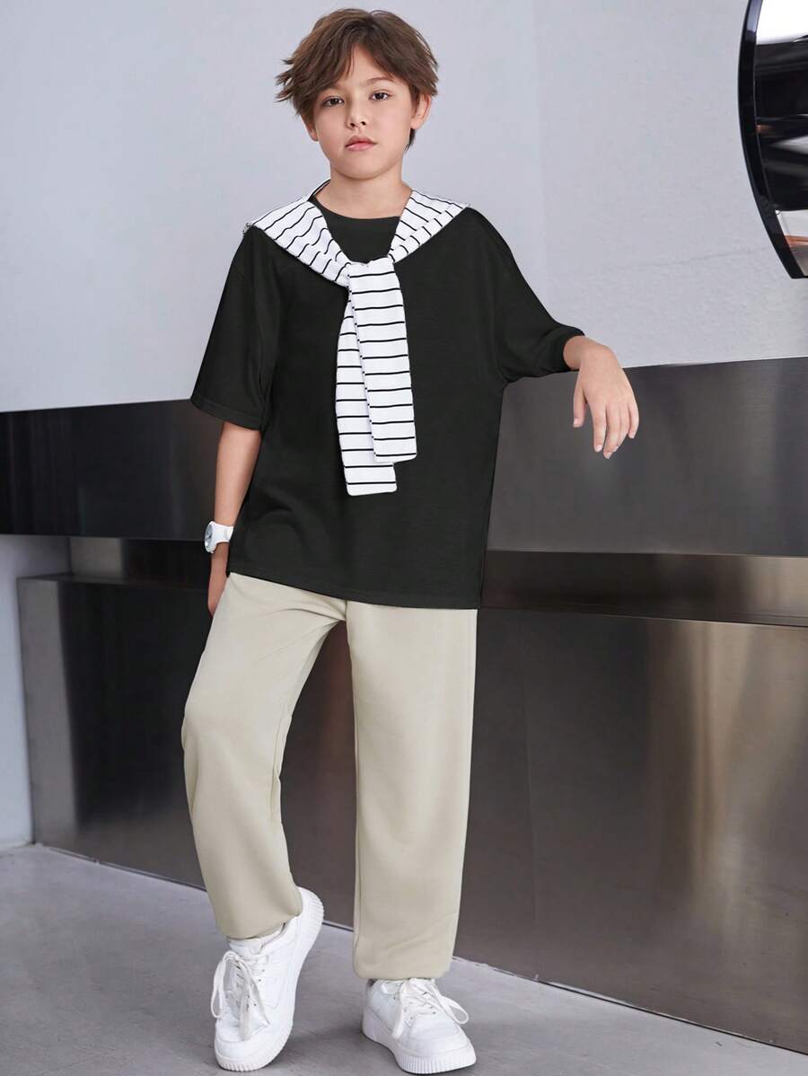 طقم كاجوال فضفاض للشباب 3 قطع: بونشو،