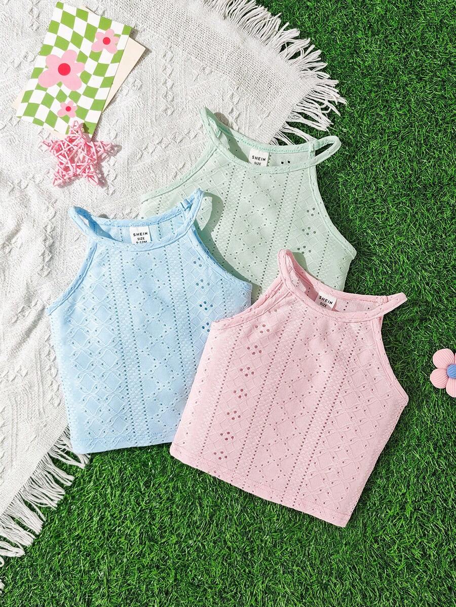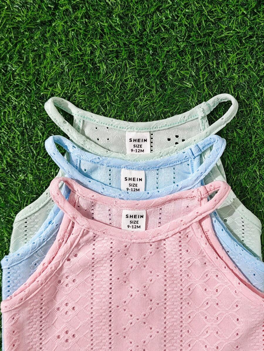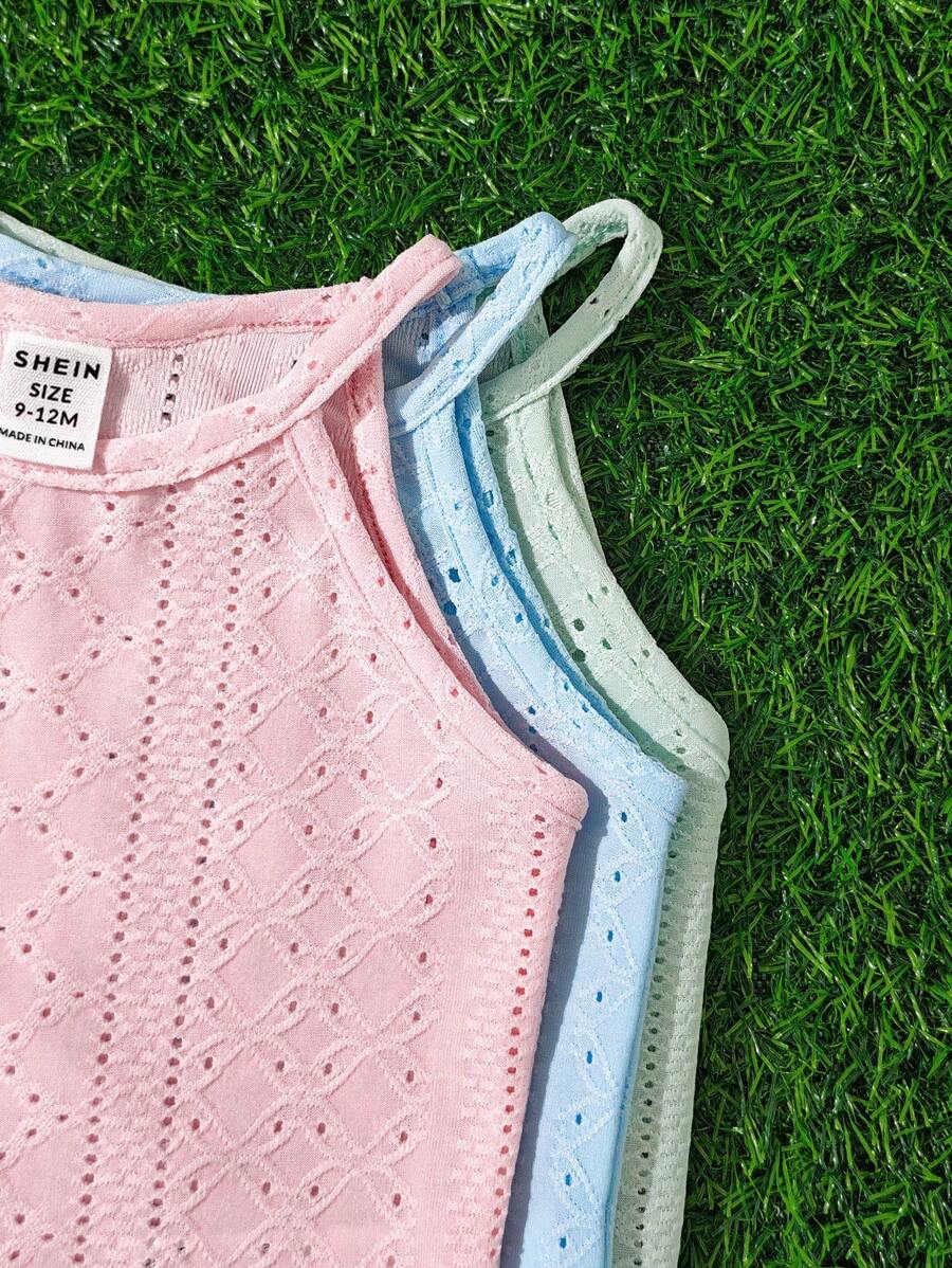 طقم مكون من 3 قطع للفتيات الصغيرات: توب كامسول بأشكال هندسية بلون واحد