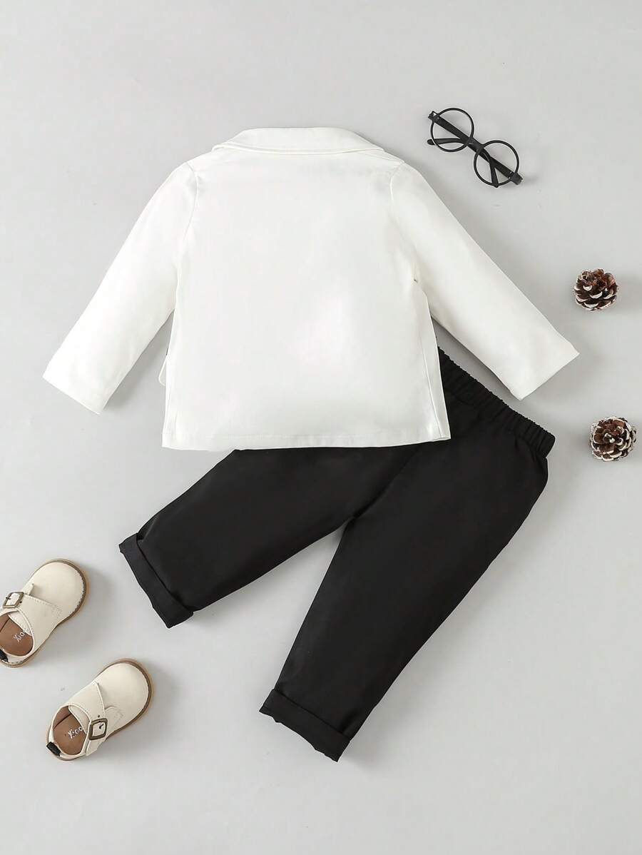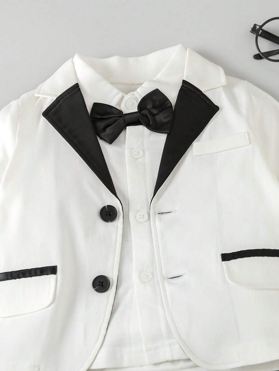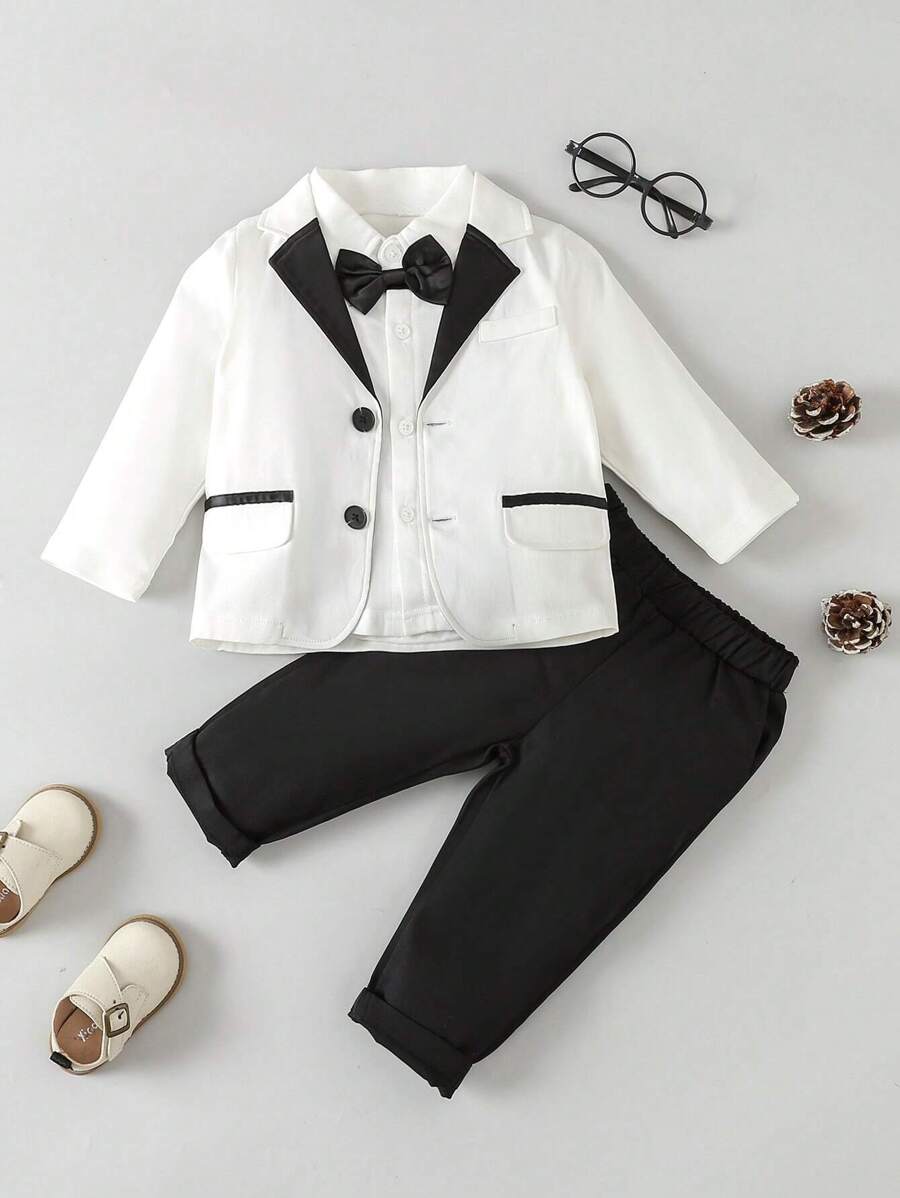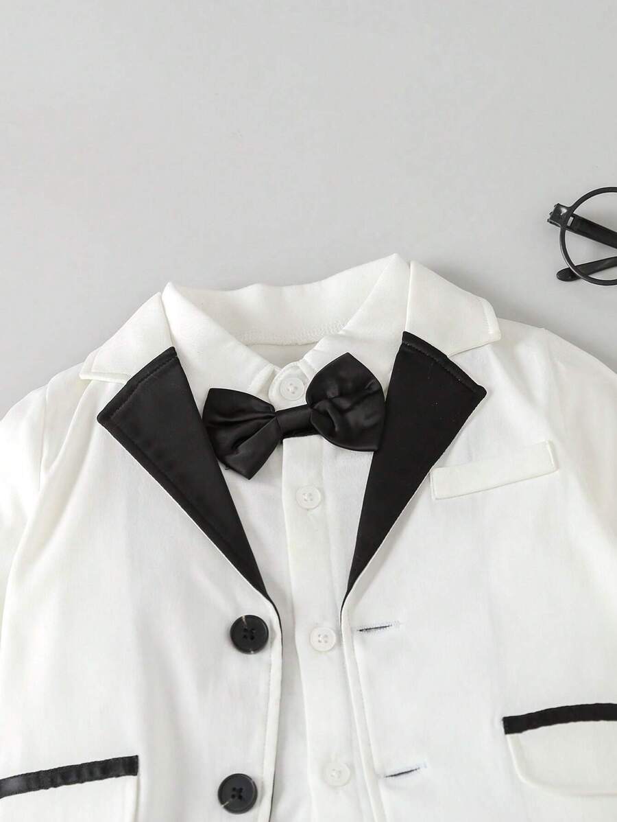 للاولاد الاطفال ياقة متباينة عقدة الفراشة أمامية بليزر وبنطلون & قميص