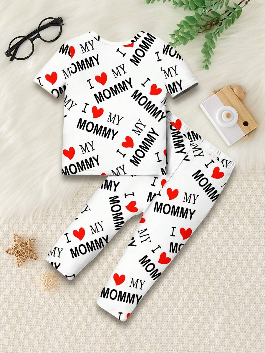 مجموعة بنطال ولباس علوي قصير الأكمام مرن راحة محبوك بنقشة