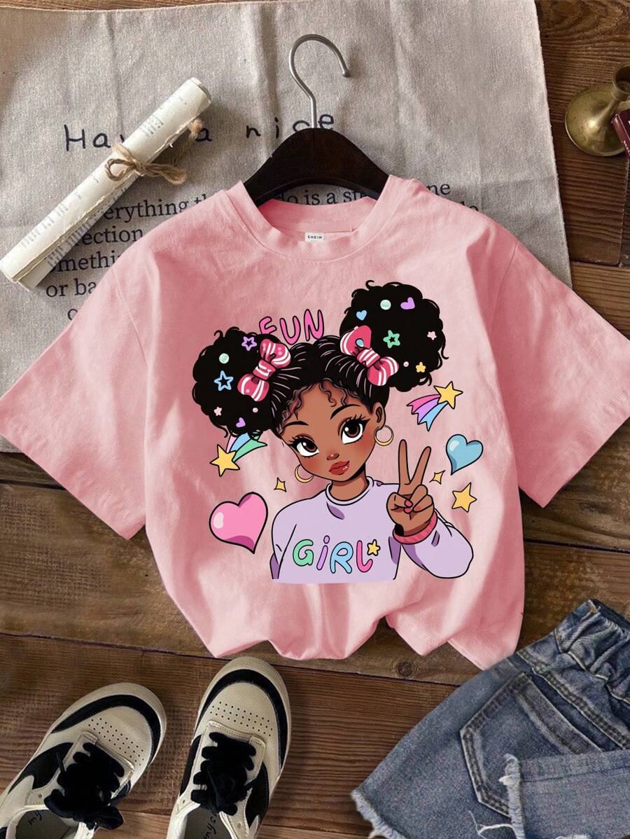 تيشيرتات البنات الكرتونية القصيرة الأكمام بطبعات كرتونية