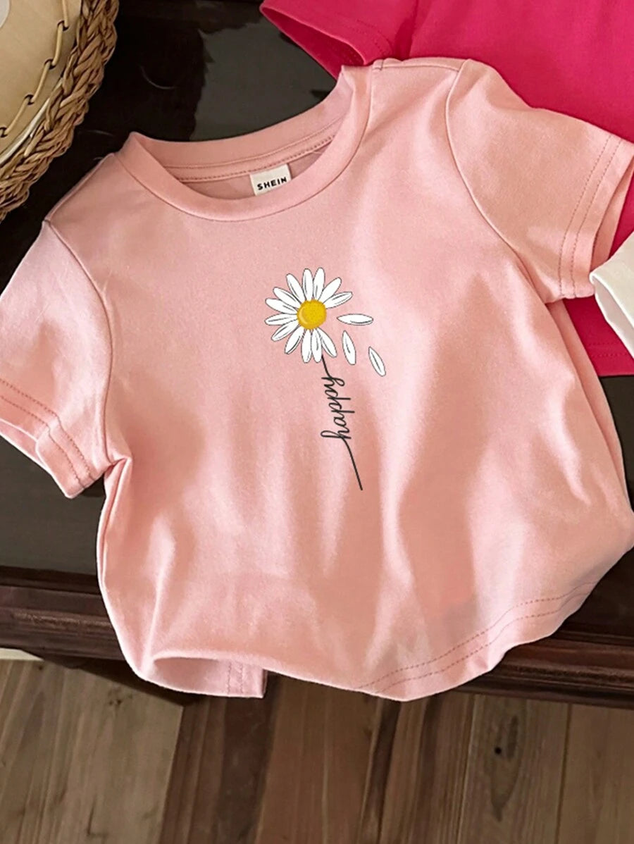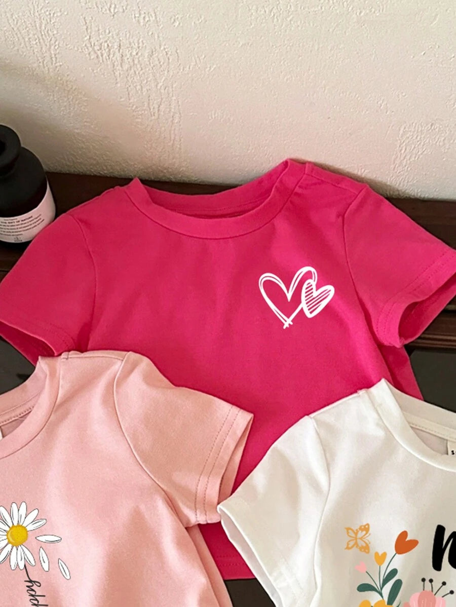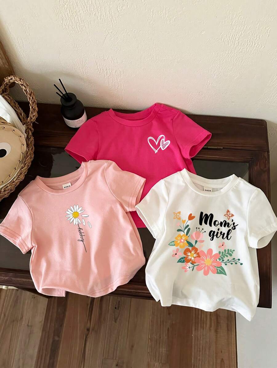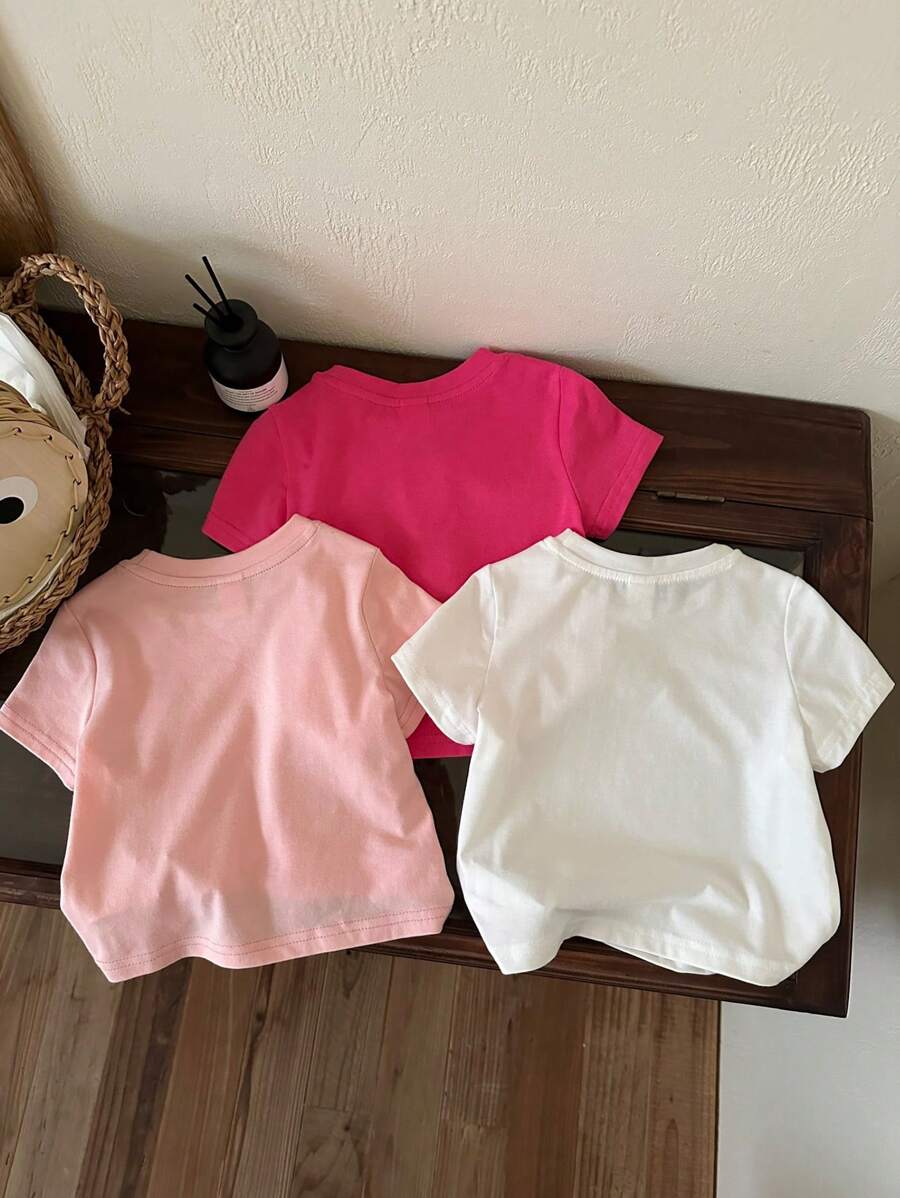3 قطع/مجموعة لفتيات الأطفال، قمصان قصيرة الأكمام
