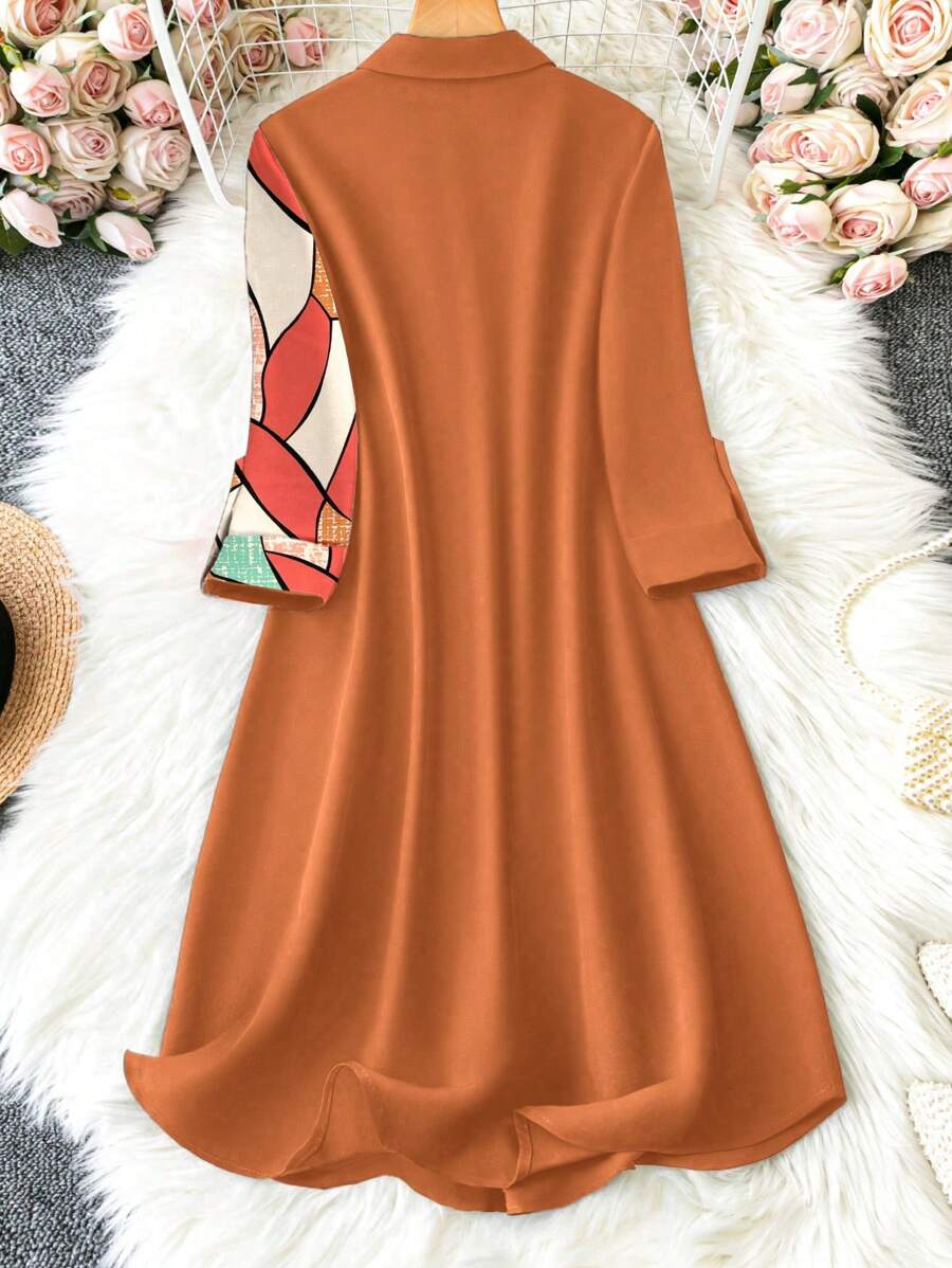 فستان نسائي مطبوع مضاف مع طية ياقة هادئة