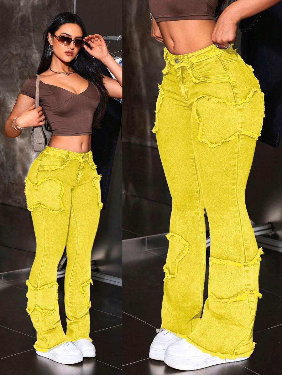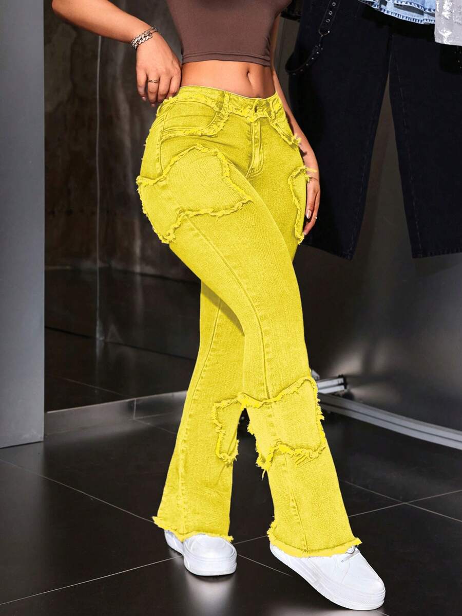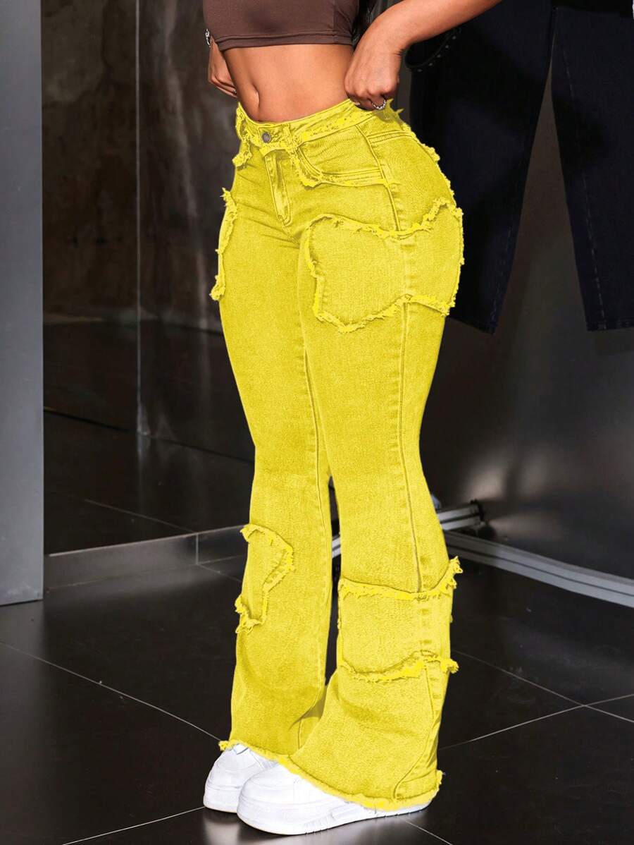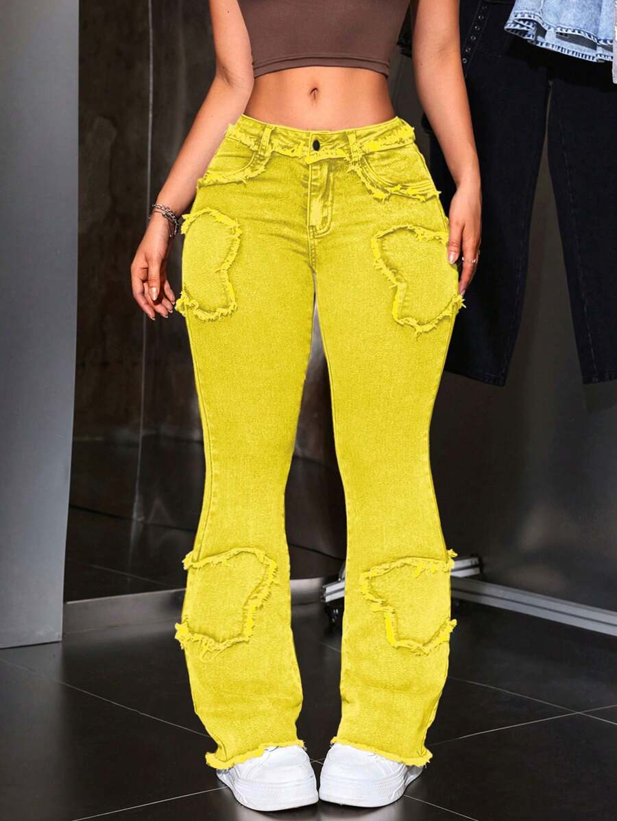 جينز نسائي سهل الارتداء بحواف مشذبة وساق متسعة