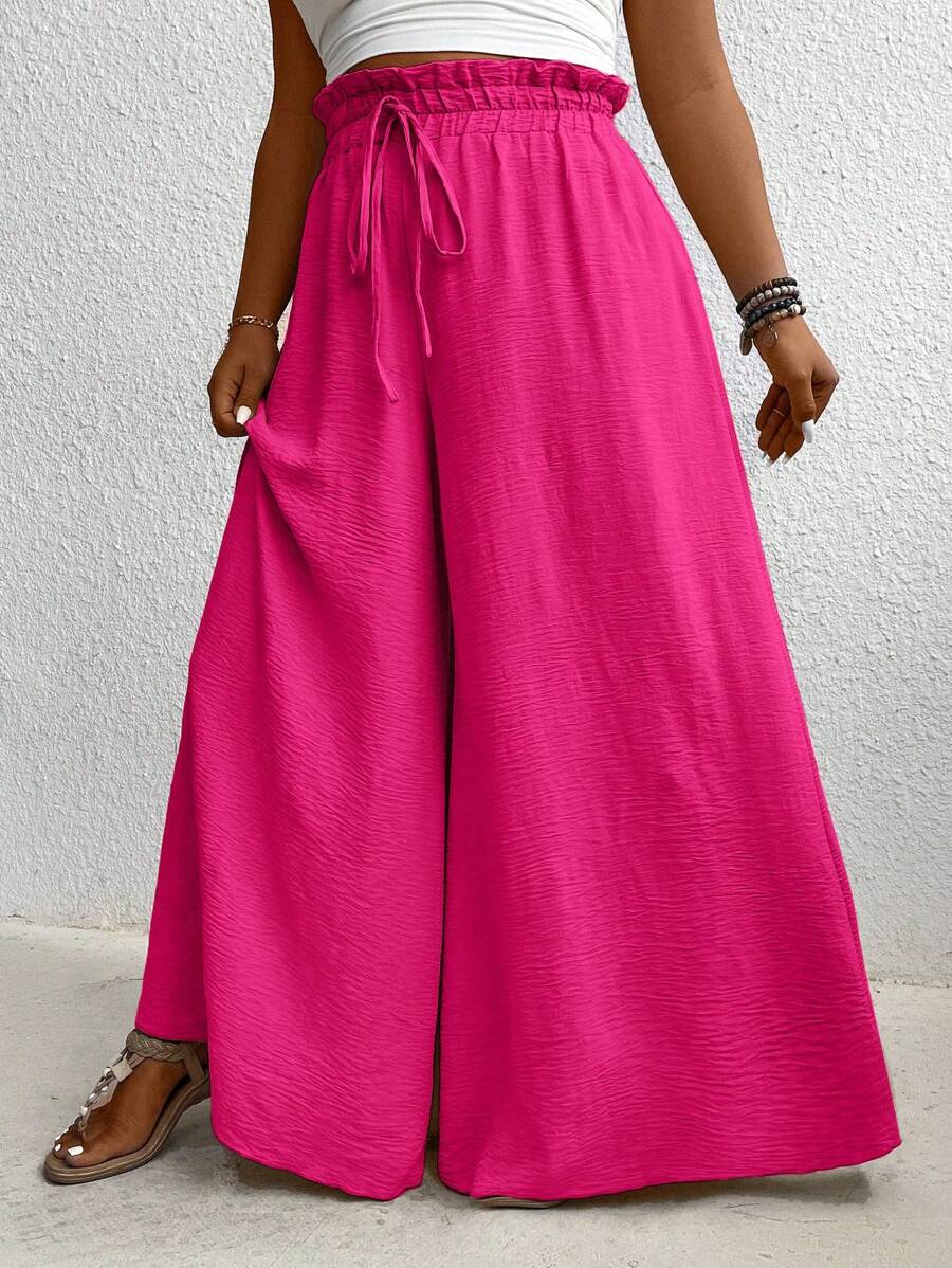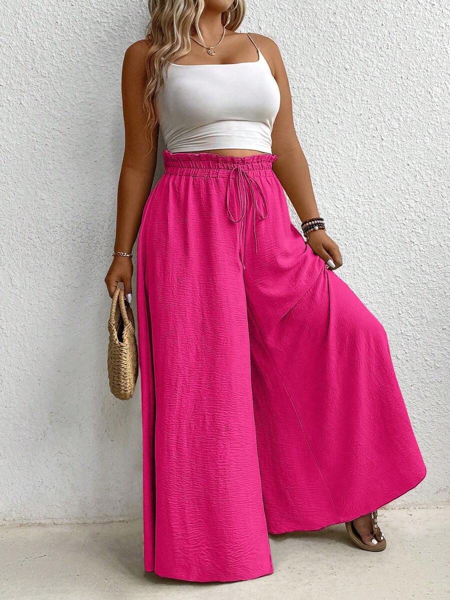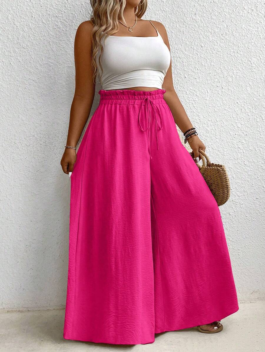 سروال واسع بقصة واسعة منسدل بحزام خصر مرن لمقاسات كبيرة