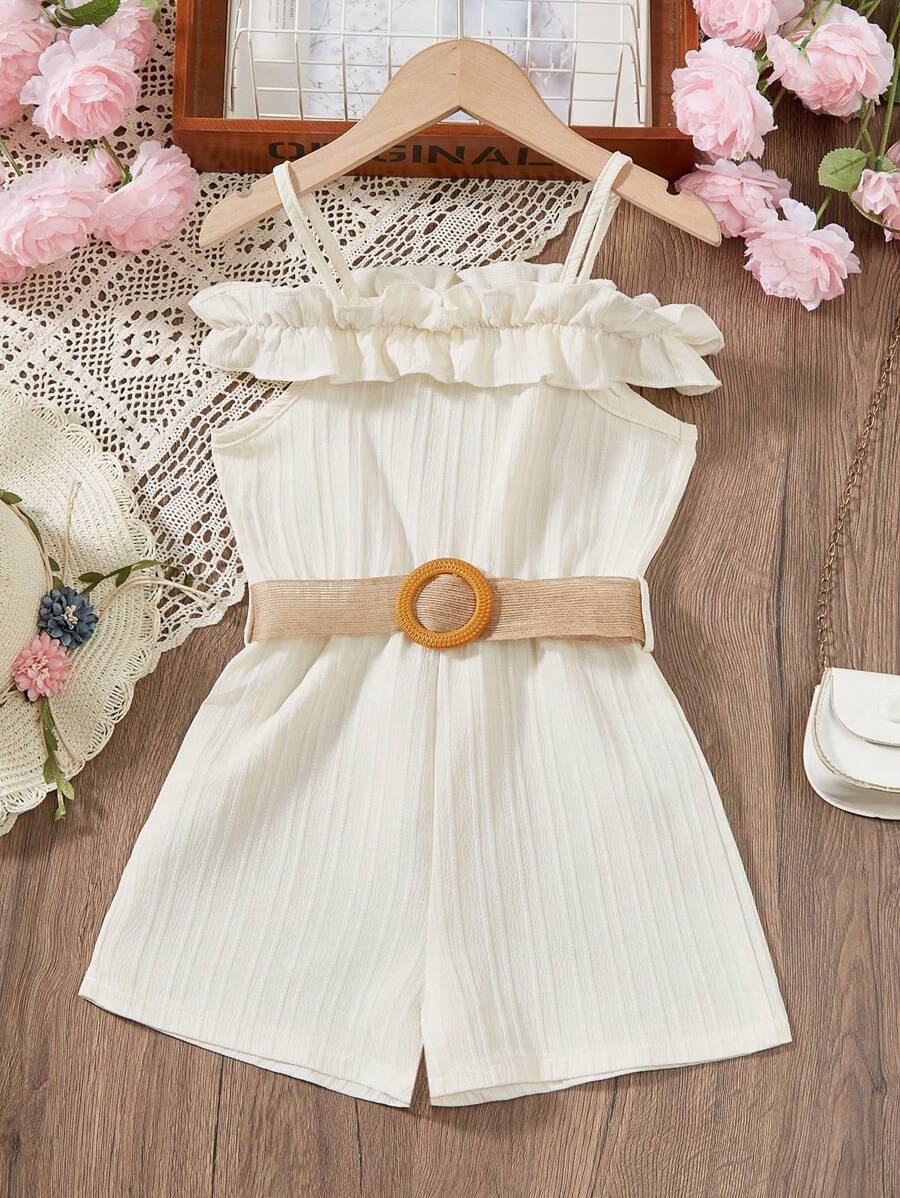 رومبير للفتيات الصغيرات بحمالات رفيعة وحواف مكشكشة