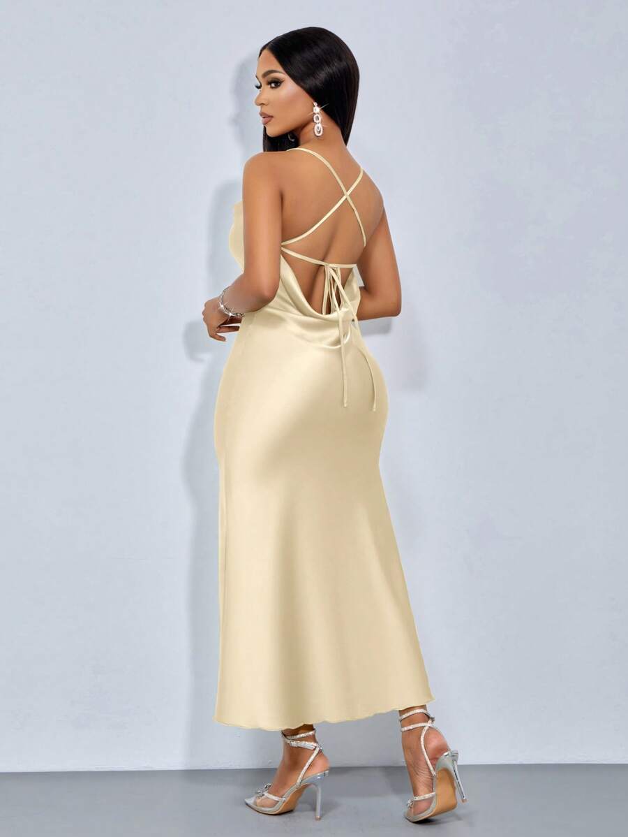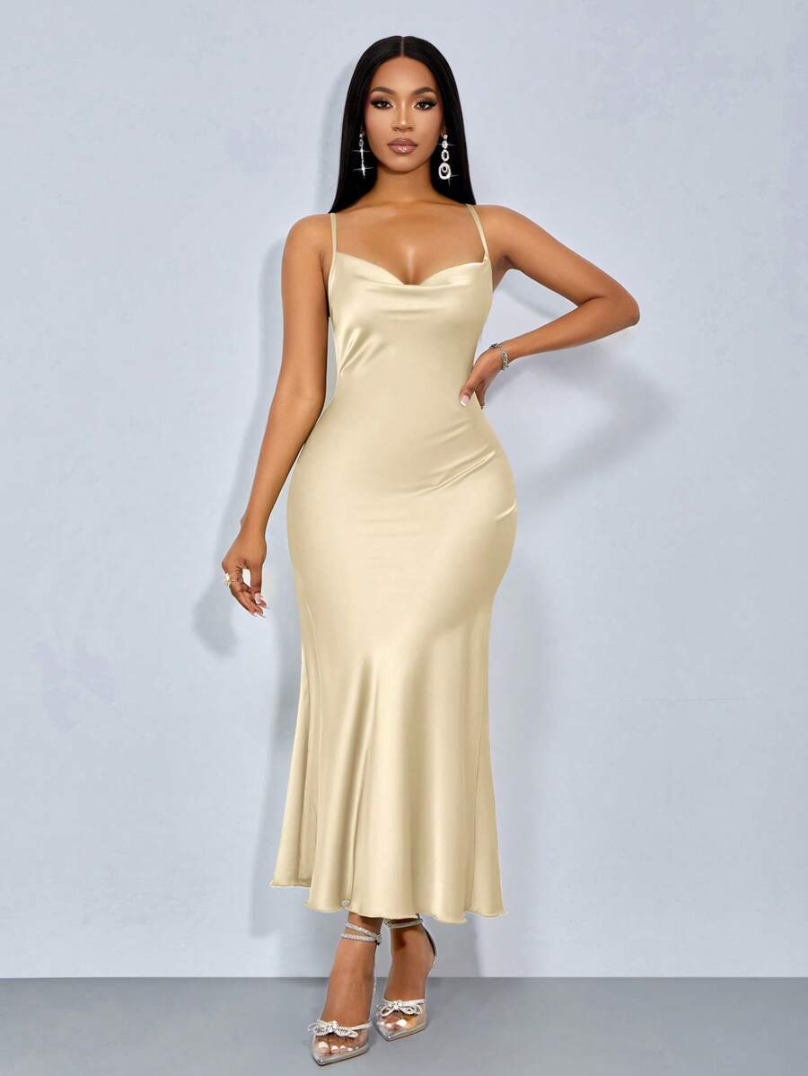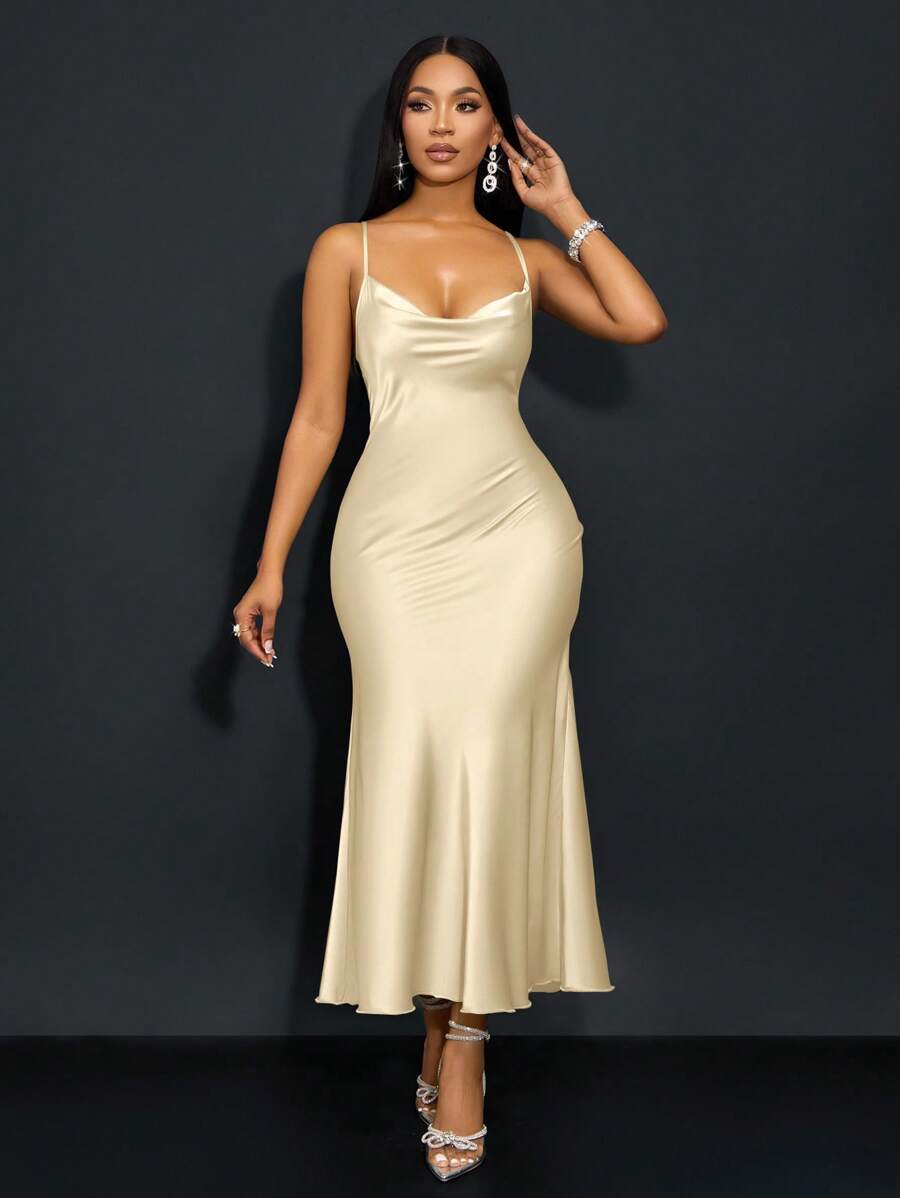 فستان حفلة أنيق وجذاب بحمالات رفيعة