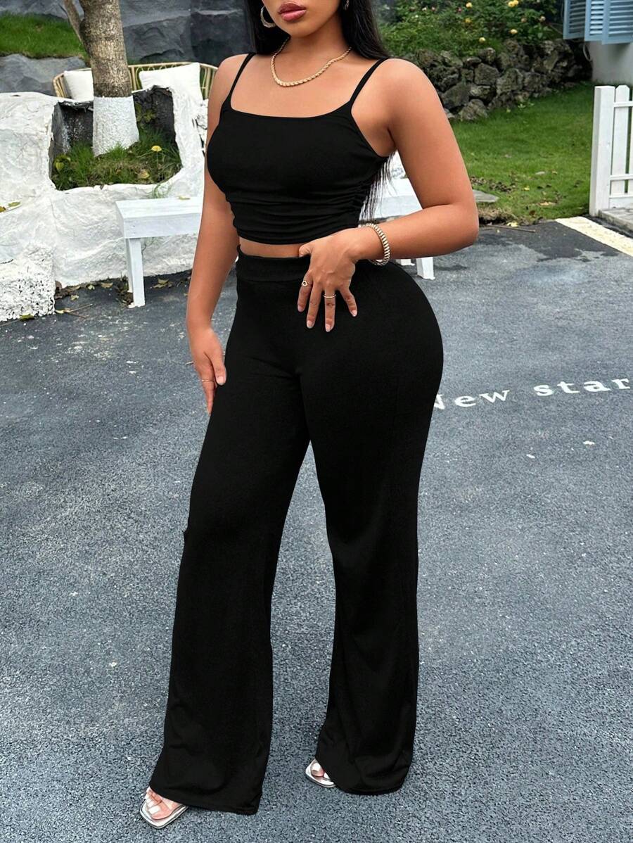 طقم سترة حمالة وبنطلون باللون الأحادي للنساء